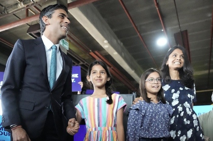 El ascenso al poder de Rishi Sunak ha llamado la atención en India, y no solo porque es el primer primer ministro británico de ascendencia india.Su esposa, Akshata Murty, de 42 años, es hija del multimillonario indio Narayana Murthy, uno de los empresarios más conocidos del país, apodado el "Bill Gates de India".La familia usa dos formas diferentes de escribir su apellido: Murty y Murthy. El padre prefiere usar Murthy, mientras que su esposa y su hija optan por Murty.Heredera de una fortuna valorada en miles de millones de dólares, Akshata Murty se convirtió en el centro de atención cuando se supo a principios de este año que había registrado un domicilio extranjero a efectos impositivos.Esto significa que no tenía que pagar ningún impuesto sobre sus ganancias obtenidas fuera de Reino Unido. Tras la revelación, sin embargo, accedió a pagar impuestos sobre sus ingresos en todo el mundo.A pesar de la inmensa riqueza de su familia, la Sra. Murty tuvo un origen más humilde.En una carta a su hija, publicada en una compilación de 2013, Narayana Murthy recordó cómo en abril de 1989 se enteró por un colega que su hija había nacido en la localidad de Hubli, porque la familia no podía pagar un teléfono."Tu madre y yo éramos jóvenes entonces y luchábamos por encontrar nuestro lugar en nuestras carreras", dice la carta.Cuando tenía solo unos meses, la Sra. Murty fue enviada a vivir con sus abuelos paternos mientras su madre, Sudha Murty, y su padre avanzaban en sus carreras en Mumbai.Un año después, Narayana Murthy cofundó Infosys, una empresa de servicios de telecomunicaciones que lo convertiría en una de las personas más ricas de India.Los padres exitosos de la Sra. Murty inculcaron en sus dos hijos la importancia de la educación y el trabajo duro. Murthy dijo que no había televisión en la casa para que sus hijos tuvieran tiempo para "cosas como estudiar, leer, debatir y reunirse con amigos".Akshata Murty estudió economía y francés en Claremont McKenna College en California. Luego obtuvo un diploma en una facultad especializada en moda antes de trabajar en las compañías Deloitte y Unilever.Posteriormente ingresó a la Universidad de Stanford donde obtuvo una maestría en administración de empresas.Fue en esa universidad donde conoció a Rishi Sunak. La pareja se casó en 2009 y tuvo dos hijas.Akshata Murty comenzó su carrera en finanzas en California antes de crear su propia marca de moda, Akshata Designs, que lanzó su primera colección en 2011.Ella le dijo a Vogue India que trabajó con artistas en aldeas indias remotas para crear sus diseños, inspirados en los valores de "autenticidad, artesanía y protección de un rico patrimonio".Sin embargo, el diario británico The Guardian informó que el negocio colapsó en tres años.Actualmente, uno de los principales intereses comerciales de la Sra. Murty es la filial londinense de Catamaran Ventures, una empresa fundada por ella y su esposo que invierte en start ups o empresas emergentes.En el registro de empresas británico, Companies House, la Sra. Murty también figura como directora de Digme Fitness, una cadena de gimnasios.La compañía se declaró insolvente en febrero de este año luego de que sus ingresos cayeran durante la pandemia de Covid-19, a pesar de recibir fondos del esquema creado por el gobierno para apoyar a las empresas durante ese periodo.El perfil de LinkedIn de la Sra. Murty también señala que es directora de New & Lingwood, una empresa que vende ropa fina de hombres.También posee una participación del 0,9% en Infosys, según el último informe anual de la empresa. El valor de esa participación se estima en cerca de 800 millones de dólares.Sus acciones en la empresa generaron controversia tras la invasión rusa de Ucrania, cuando Infosys estuvo bajo presión para terminar sus operaciones en Moscú. En abril, un vocero de Infosys dijo a la BBC que la compañía estaba en el proceso de cerrar su oficina en Rusia.En términos más generales, la enorme riqueza de la pareja ha llevado a algunos a cuestionar si Sunak está en contacto con la gente común, particularmente durante la actual crisis marcada por el aumento en el costo de vida.En el pasado, algunos cónyuges de primeros ministros, incluyendo el esposo de Theresa May, Philip May, mantuvieron un perfil bajo.Otros, como la abogada de derechos humanos Cherie Blair, quien continuó con su trabajo después de que su esposo Tony se convirtiera en Primer Ministro, atrajeron mucha más atención.La Sra. Blair a menudo aparecía en los titulares por su trabajo de caridad y sus contratos para escribir libros.Hasta ahora, Akshata Murty no parece haber buscado la atención de los medios, sino que ha sido empujada al primer plano por las controversias recientes.Sin embargo, el ascenso de su esposo al puesto más alto en la política británica significa que el interés en la Sra. Murty solo se volverá más pronunciado.