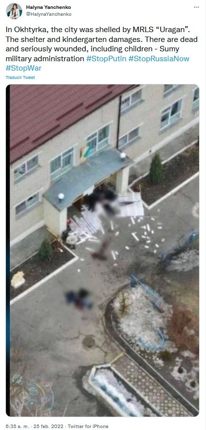 Mientras las tropas rusas siguen avanzando en su ofensiva en Ucrania el viernes, los intensos combates sacuden también el este del país.El jefe de la administración militar regional de Sumy, Dmytro Zhivitsky, dijo que hubo "huracanes" de bombardeo en Okhtyrka, en zonas residenciales, refugios antibombas y un kínder. Aunque no precisó la cifra, dijo que hay muertos y heridos.Halyna Yanchenko, parlamentaria de Ucrania, compartió supuestas imágenes del ataque al kínder en Okhtyrka, en donde señaló que entre los muertos hay niños.Zhivitsky señaló que los soldados rusos entraron en la ciudad de Sumy, que se encuentra cerca de la frontera con Rusia y de una autovía que lleva a la capital, Kiev, desde el este."Vehículos militares desde Sumy están avanzado hacia Kiev", apuntó Zhivitsky. "Muchos equipos han pasado por aquí y se dirigen directamente al Oeste".Según Zhivitsky, otra ciudad nororiental, Konotop, estaba también sitiada. El dirigente pidió a los residentes en la región que luchen contra los soldados rusos.OA