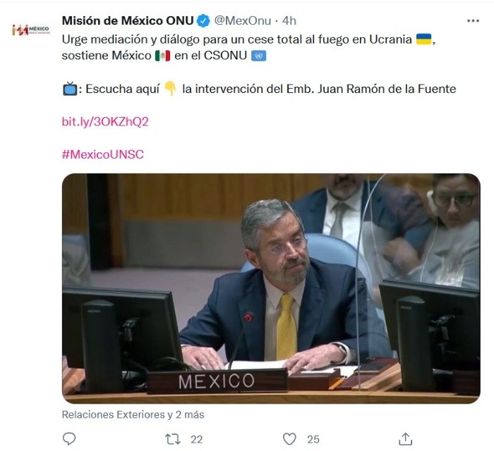 El embajador de México ante la Organización de las Naciones Unidas (ONU), Juan Ramón de la Fuente, condenó los ataques rusos en un centro comercial en Kremenchuk, Ucrania y, dijo: "Urge parar la guerra".En sesión del Consejo, De la Fuente reprobó los ataques en contra de un centro comercial ucraniano, en donde hubo al menos 18 personas muertas."Condenamos el ataque de ayer a un centro comercial en Kremenchuk, en el que se encontraba un numeroso grupo de personas, de civiles. Aun no se tiene el saldo final, pero hasta ahora al menos 18 muertos y decenas de heridos, lamentable", aseveró."Un ataque de esta naturaleza es contrario al derecho internacional, respaldamos el llamado del coordinador humanitario para Ucrania en el sentido de iniciar sin dilación una investigación independiente sobre estos hechos", agregó sobre el suceso.Asimismo, señaló como "injustificables" los bombardeos en áreas residenciales en múltiples poblaciones en Donbás. "Han destruido infraestructura critica de comunicaciones y servicios. Han afectado gravemente la provisión de servicios esenciales de salud, así como el acceso a varias ciudades de la región".De igual manera, expresó: "Hacemos un llamado urgente para que se permita el acceso seguro e irrestricto a todo el personal que presta ayuda humanitaria"."Preocupa sobremanera la proliferación de armas en la región. Se trata de un factor de volatilidad adicional pues su creciente disponibilidad en manos de población civil, propicia la continuación de los conflictos", añadió De la Fuente.Finalmente, urgió a la mediación y el diálogo que lleven a un cese al fuego total. "Urgen la mediación y el diálogo que lleven a un cese al fuego total, incrementar las pausas humanitarias que garanticen la evacuación segura y voluntaria de la población y encontrar mecanismos para movilizar granos, fertilizantes y otros insumos básicos, que se encuentran confinados por la guerra y que aumentan las precarias condiciones de insuficiencia alimentaria en otras partes del mundo".JM