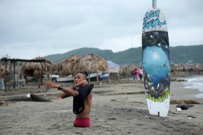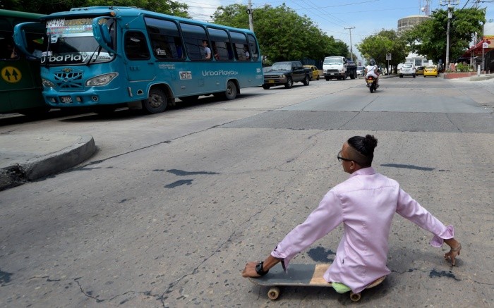 Rapear, surfear y estrenarse como padre a los 25 años se convierten en hazañas cuando, por un mal congénito, no se tiene la mitad del cuerpo. Alfonso Mendoza añadió a su historia otro capítulo: el de migrante en Colombia tras huir de una Venezuela rota.Un día este joven de cabello ensortijado y brazos fuertes y tatuados decidió llamarse Alca, una contracción de las primeras letras de su nombre y las de "camino". A Alca le entusiasma rodar por la vida, ya sea en su patineta o de vez en cuando en hombros solidarios. Así, rodando y sonriendo, llegó hace nueve meses a Barranquilla, la ciudad portuaria más grande del Caribe colombiano.Cuenta que lo hizo atravesando cientos de kilómetros por uno de los peligrosos atajos fronterizos que hierven bajo el sol desértico de La Guajira. Aunque tenía pasaporte, prefirió tomar el riesgo para poder meter algunas artesanías para la venta.Un plan de fuga que dejó de ser excepción. Cerca de un millón de personas han llegado desde Venezuela a Colombia, muchos sin documentos y por las trochas ilegales que antaño han servido para el contrabando de mercancías, sobre todo de la subsidiada gasolina.Según la ONU, 1.9 millones de venezolanos han dejado su país desde 2015, huyendo de la crisis económica y política."Me vine como ilegal, por trocha, al igual que como también se vino mi esposa, fue rudo por la guerrilla (colombiana), por la Guardia Nacional" de Venezuela, recuerda Alca en entrevista.Alca dejó atrás una Venezuela postrada por la escasez y la hiperinflación, donde en tiempos mejores podía ganarse la vida con sus conocimientos en diseño y como conferencista de superación personal.Pero "en el momento en que me enteré de que iba a ser papá, tuve que venir a Colombia".En su país, reconoce, no tenía cómo ofrecerle un "mejor futuro" a su compañera Mileidy Peña y a Auralys, la bebé de ambos que nació el 21 de septiembre en un hospital público de Barranquilla.Un porvenir que por ahora resulta difícil de imaginar. Los tres malviven en un terreno de invasión del sur de Barranquilla, en una casa de zinc y madera, al lado de una gallera que los domingos vibra con las apuestas. A diario se las arregla para descender por unas gradas rústicas y avanzar por un camino pedregoso. Las ruedas crujen literalmente debajo de su cuerpo.Tras ensayar como organizador de rifas y vendedor de artesanías y jugos, Alca comenzó a rapear en el transporte público. En Venezuela cantar era un pasatiempo, pero en Colombia es su medio para sobrevivir.Siempre rodando, llega hasta la puerta de un autobús viejo. Como puede se trepa. El hombre de gafas grandes y pendientes comienza a soltar versos con el parlante trenzado y el micrófono pegado a la boca."Y si voy a Venezuela/ Y me toca regresar/ No lo pensaría dos veces/ para volver a esta ciudad".Sus letras casi que le sirven de salvoconducto. La llegada masiva de venezolanos ha generado alguno que otro brote de xenofobia, pese a la política de "brazos abiertos" que defiende el gobierno. Hasta mediados de este año habían sido regularizados 820 mil venezolanos.En un buen día, Alca puede regresar a casa con 30 mil pesos colombianos, unos 10 dólares. Hoy, un salario mensual en la desvalorizada moneda venezolana equivale a 29 dólares.Cuando su trabajo informal se lo permite, Alca busca el mar. Hace mucho que la agenesia femoral que atrofió el desarrollo de sus miembros inferiores dejó de ser un complejo.Después de sobreponerse a la depresión, que le hizo pensar en el suicidio a los 13 años, se aficionó al patinaje acrobático y más recientemente aprendió a surfear."Una ola es una barrera que se va rompiendo a través de la tabla", señala.Una metáfora de su vida. Apenas nació, sus padres lo abandonaron y su abuela lo cuidó hasta que ella falleció cuando él tenía 9 años. Luego vinieron los tiempos de la silla de ruedas y la escuela: "Los niños me metían en las papeleras o me encerraban en los baños". Hasta que la música le "salvó la vida" y un amigo lo ayudó a cambiar la silla por la patineta.El rapero surfista y ahora padre quiere recuperar de a poco lo perdido en Venezuela. Incluso ya retomó sus conferencias con un único mensaje: "Dios no me dio piernas, pero lo reemplazó con talentos".IM