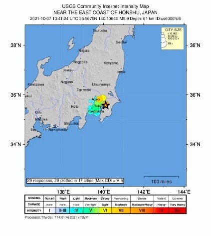 Un terremoto de magnitud 6.1 en la escala Ritcher se produjo este jueves en la prefectura de Chiba, colindante con Tokio, y se sintió con fuerza en la capital, sin que se haya activado la alerta de tsunami ni se haya informado por ahora de daños significativos.El seísmo tuvo lugar a las 22:41 hora local (08:41 tiempo de México) a 80 kilómetros de profundidad y con epicentro en Chiba, región de la costa nipona del Pacífico, según datos de la Agencia Meteorológica de Japón (JMA).El terremoto alcanzó el nivel 5 alto en la escala sísmica japonesa de 7 niveles (centrada en medir la agitación en la superficie) en algunas zonas del Área Metropolitana de Tokio y en Saitama, al norte de la capital, y sacudió también con menor intensidad otras regiones centrales del país.El temblor no desencadenó la alerta automática de tsunami ni consta que haya causado por el momento daños materiales notables ni víctimas, según recogen los medios nacionales.Varias líneas ferroviarias locales, así como de alta velocidad, se detuvieron por el sistema automático de seguridad, según informó la compañía operadora JR East, que se encuentra revisando las vías por si se hubiera producido algún desperfecto.Japón se asienta sobre el llamado cinturón de Fuego del Pacífico, una de las zonas sísmicas más activas del mundo, y registra terremotos con relativa frecuencia, por lo que las infraestructuras y edificios están diseñadas para aguantar los temblores.GC
