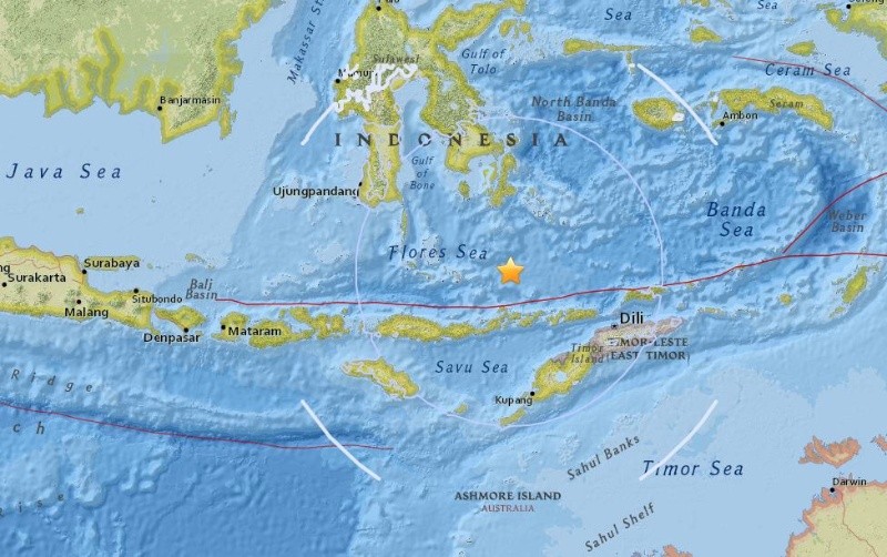 Un terremoto de magnitud 6.7 sacudió este martes el mar en la región central de Indonesia sin que las autoridades informasen en un principio de víctimas o daños. El Servicio Geológico de Estados Unidos, que registra la actividad sísmica en todo el mundo, situó el hipocentro a 549 kilómetros de profundidad bajo el lecho marino. La población grande más próxima al sismo es Maumere, una localidad de 70 habitantes de las islas menores de Sonda o Nusa Tenggara situada a 178 kilómetros al sur sureste del epicentro. En 2004, un fuerte terremoto en el norte de la isla de Sumatra generó un tsunami que mató a unas 230 mil personas en una docena de naciones bañadas por el océano Índico, la gran mayoría de ellas en Indonesia. Indonesia se asienta sobre el llamado Anillo de Fuego del Pacífico, una zona de gran actividad sísmica y volcánica en la que cada año se registran unos siete mil terremotos, la mayoría moderados. El 90 por ciento de los seísmos que ocurren en el mundo tienen lugar en el Anillo de Fuego del Pacífico, según el Servicio Geológico de Estados Unidos.