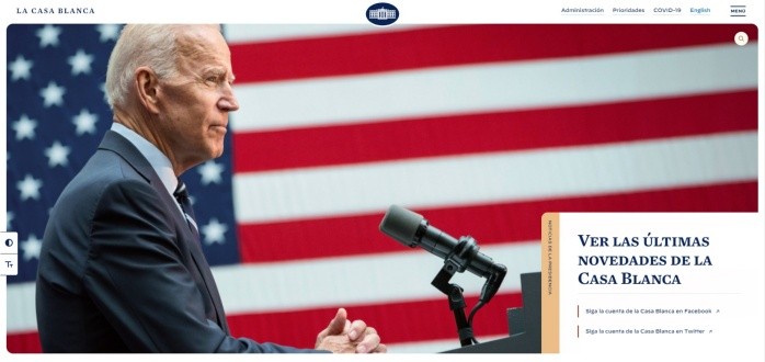 Poco después de que el nuevo presidente de Estados Unidos, Joe Biden, asumiera el cargo, la Casa Blanca estrenó este miércoles su nueva y remozada página web, en la que se vuelve a informar en español después de que este idioma desapareciese del sitio oficial durante el mandato de su predecesor, Donald Trump.La web de la Casa Blanca ofrece hoy el mismo contenido en inglés que en español, idioma que pasó al olvido oficial hace justo cuatro años, cuando se inauguró la página oficial del gobierno del magnate neoyorquino.Aunque semanas después de que asumiera el cargo, el 20 de enero de 2017, la entonces asesora del mandatario, Helen Aguirre Ferré, asegurase que la web tendría versión en español porque el gobierno Trump comprendía "la importancia y el interés" que hay en tener información en ese idioma, fueron pasando los meses sin concretarse esa medida.La administración anterior, la del ex presidente Barack Obama (2009-2017), también tuvo versión en español de la web de la residencia presidencial.El español es hablado por más de 50 millones de personas en Estados Unidos y su retirada de la web oficial de la Casa Blanca fue objeto en su día de numerosas críticas por parte de amplios sectores hispanos de Estados Unidos e incluso de las autoridades españolas y los responsables de la Academia de la Lengua en España.Aquella decisión fue vista como un desplante más de Trump, que lanzó su campaña precisamente con ataques a la comunidad mexicana, la más numerosa dentro de la población de origen latinoamericano en Estados Unidos.Sin embargo, con Biden en la Casa Blanca parece haber cambiado y ya tienen también cuenta oficial en Twitter en español y, aunque no han publicado todavía ningún mensaje, paulatinamente va sumando seguidores.Pero no tienen todavía cuenta en español en otras de las grandes redes sociales como Instagram o Facebook, donde todavía se puede ver la cuenta administrada por la Casa Blanca durante el mandato de Obama y cuyo último mensaje tiene fecha precisamente del 20 de enero de 2017.Biden tiene previsto presentar este mismo miércoles varias medidas de gran interés para la comunidad latina de EU, como un proyecto de ley para lograr una reforma migratoria que dé acceso a la ciudadanía a cerca de 11 millones de indocumentados y ordenará detener la construcción del muro fronterizo impulsado por Trump, entre otras.Uno de los contenidos de la nueva web de la Casa Blanca aborda el combate a la pandemia del coronavirus, que está afectando de manera desproporcionada a la comunidad hispana.Precisamente en este tema, al gobierno de Trump también le costó publicar información en este idioma y en marzo de 2020 finalmente sacó una traducción de las pautas gubernamentales de combate a la enfermedad en los sitios web de la Casa Blanca y los Centros para el Control y la Prevención de Enfermedades (CDC).Lo hizo después de tres días de presiones y quejas de algunos de los principales grupos latinos del país, que demandaban información en este idioma para los cerca de 60 millones de hispanos que viven en el país.OA