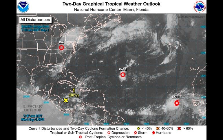 Después de un agitado agosto en la temporada atlántica de ciclones, este miércoles se formó la tormenta tropical "Larry", que se prevé se convertirá en huracán este jueves debido a su rápido avance y fortalecimiento de sus vientos."Larry", la tormenta tropical 12 de este 2021, presenta vientos máximos sostenidos de unos 85 kilómetros por hora con ráfagas más fuertes, según más reciente boletín del centro Nacional de Huracanes (NHC, en inglés) de Estados Unidos.El NHC, con sede en Miami, detalla que se espera un fortalecimiento adicional durante los próximos días y se pronostica que se convierta en huracán el jueves.El sistema se encuentra sobre el este del Atlántico, a 445 kilómetros al suroeste de las islas del sur de Cabo Verde (África) y se desplaza hacia el oeste a 35 kilómetros por hora.Los meteorólogos pronostican un movimiento hacia el oeste-noroeste durante los próximos días, seguido de un giro hacia el noroeste durante el fin de semana.Los vientos de intensidad de tormenta tropical se extienden hasta 95 kilómetros del centro.La actividad de ciclones tropicales en la cuenca atlántica durante agosto fue "por encima de lo normal" en términos de la cantidad de tormentas con nombre, huracanes y grandes huracanes, según el NHC.Se formaron seis tormentas con nombre en la cuenca atlántica en ese mes que terminó el martes, con tres de ellos convirtiéndose en huracanes y dos de ellos en grandes huracanes."Grace" fue un huracán de categoría 3 cuando tocó tierra al sur de Tuxpan (en México), el 22 de agosto, mientras que "Ida" fue un huracán de categoría 4 cuando tocó tierra cerca de Port Fourchon (Luisiana, Estados Unidos), el domingo pasado. Además, una depresión tropical se formó en el último día del mes.Según el NHC, basado en una climatología de 30 años (1991-2020), 3 o 4 tormentas con nombre se desarrollan típicamente en agosto, con una o dos de ellas convirtiéndose en huracanes.Se forma un gran huracán en agosto cada 1 o 2 años, detalló.A Larry lo acompañan hoy el ciclón post-tropical "Ida", que se mueve hacia el noreste de Estados Unidos dejando lluvias, y la depresión tropical "Kate", que se desplaza por el Atlántico y se prevé su pronta desaparición."Ida" presenta vientos máximos sostenidos de unos 45 kilómetros por hora y supone aún riesgos de fuertes lluvias y las consecuentes inundaciones, como también tornados, en el noreste estadounidense.El sistema se encontraba a unos 70 kilómetros al suroeste de Elkins (Virginia Occidental) y a unos 110 kilómetros a norte de Roanoke (Virginia).Los meteorólogos alertan de inundaciones y crecidas repentinas para partes del los Apalaches centrales, el Atlántico medio y el sur de Nueva York y de Nueva Inglaterra.El NHC pronosticó algún fortalecimiento este miércoles a medida que Ida se mueve costa afuera.Entre tanto, la depresión tropical Kate se encuentra a unos mil 460 kilómetros al noreste de las Islas Sotavento y presenta vientos máximos sostenidos de 55 kilómetros por hora.Kate no representa riesgo en tierra y se prevé que se disipe este jueves.Si te interesó esta noticia y quieres saber más, entonces descarga y descubre INFORMAPlus, la aplicación digital de EL INFORMADOR, en donde tenemos contenidos exclusivos, seleccionados por nuestros editores, para darles una experiencia más completa a los lectores. Descarga la aplicación y pruébala GRATIS por treinta días. Para iOS: https://apple.co/35jaVgbPara Android: https://bit.ly/3gwVSEVSi eres suscriptor de EL INFORMADOR tu acceso está incluido, solicítalo al 33 3678-7777IM