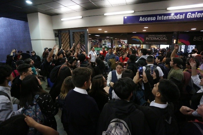El metro de Santiago, eje del transporte público de la capital chilena, era objeto este viernes de una serie de violentas "evasiones masivas", en rechazo al alza de tarifas, lo que paralizó tres de sus principales líneas y desató incidentes en varios puntos de la ciudad.Reclutadas a través de las redes sociales bajo la consigna #EvasionMasivaTodoElDia, miles de personas -mayoritariamente estudiantes- se concertaron durante toda esta semana para derribar las rejas de entrada a las estaciones, destruir los torniquetes y sobrepasar los controles de acceso para protestar por el alza del pasaje (de 3.75%) en las horas punta.Este viernes, las protestas -que no tienen un líder visible- lograron paralizar el total de las operaciones en las líneas 1 y 2, que cruzan el centro de Santiago, la línea 6 y decenas de estaciones de otros recorridos. El cierre obligó a los usuarios del Metro a subir a la superficie, colapsando el sistema de autobuses de la ciudad y teniendo que marchar por las calles rumbo a sus hogares sorteando los enfrentamientos entre policías y manifestantes.En la estación La Moneda, al frente de la casa de gobierno, decenas de manifestantes -en su mayoría jóvenes- arremetieron a primera hora de la tarde contra las instalaciones y la policía repelió los ataques con chorros de agua y gas lacrimógeno. Pero las protestas recrudecieron horas más tarde provocando incidentes mayores, con manifestantes lanzando palos y piedras a las fuerzas policiales que respondieron con varios carros de choque. Además, se cerró el perímetro de la casa de gobierno donde el presidente Sebastián Piñera lidera una reunión de emergencia.El jueves las protestas habían dejado 133 detenidos tras acciones simultáneas en al menos cinco de las 164 estaciones del ferrocarril metropolitano, con daños calculados por la empresa estatal en entre 400 y 500 millones de pesos, equivalentes a unos 634 mil dólares."Este afán de destruirlo todo, no es protesta, es delincuencia", afirmó este viernes Piñera, que ha sorteado con relativa calma social su año y medio de mandato.Sustentado en el alza en el precio del petróleo, el dólar y la modernización del sistema, el valor del pasaje del Metro de Santiago en las horas punta -de la mañana y la tarde- quedó en 830 pesos (unos 1.17 dólares). Desde 2010 no se daba un alza en ese rango.El incremento no afectó el valor de los pasajes para estudiantes y la tercera edad, pero se suma, sin embargo, al alza general de 20 pesos en las tarifas decretada en enero pasado.La paralización de las líneas responde a la falta de "condiciones mínimas de seguridad", advirtió el sindicato de Profesionales y Técnicos de Metro, que representa a más de mil 800 trabajadores."Se le fue de las manos al Gobierno de Chile, que sigue mirando esto de forma superficial, y no del fondo", denunció el sindicato en su cuenta de Twitter al anunciar el cierre de las primeras estaciones.La inusual violencia en un sistema de transporte considerado uno de los más modernos de América Latina y que moviliza cada día a cerca de tres millones de pasajeros, provocó que este viernes fueran convocados de emergencia al palacio presidencial la ministra de Transporte, Gloria Hutt, y el presidente del Metro, Louis de Grange."No puede ser que un grupo que no llega a ser el 0.1% de esos tres millones de pasajeros esté causando estas molestias y obligando a las personas a asumir los costos de su irresponsabilidad", criticó la ministra Hutt, tras afirmar que no es posible dar marcha atrás al aumento.Con una extensión de 140 kilómetros, el metro de Santiago es el más extenso de Sudamérica. En América Latina, es sólo superado por el de la Ciudad de México.Desde que en 2006 sus operaciones se integraron con las de los autobuses públicos, el ferrocarril metropolitano se ha ido consolidando como el eje del transporte público de Santiago, una ciudad con altos niveles de contaminación y congestión.De acuerdo a De Grange, es el único sistema de transporte en América Latina que permite pagar un solo viaje usando combinadamente el autobús y el metro.JM