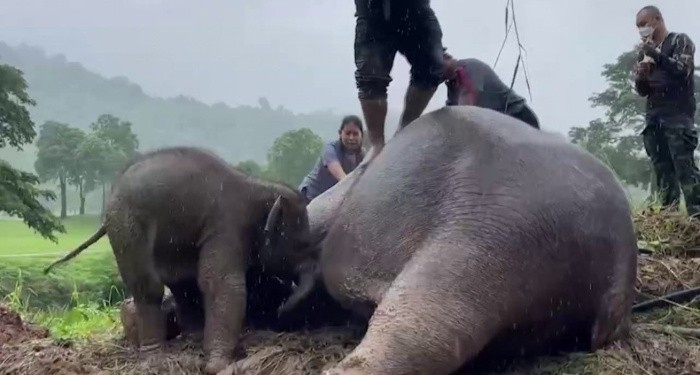 Tailandia fue escenario de un impactante rescate una mamá elefante y su bebé que cayeron a una zanja de dos metros de profundidad.El hecho ocurrió el pasado miércoles en un parque nacional de Tailandia.Una veterinaria que participó en el rescate comentó que la cría, de un año de edad, cayó en un tubo de drenaje de un edificio de hoteles ubicado en las cercanías del Parque Nacional de Khao Yai, al noreste de Tailandia y a unos 200 kilómetros de Bangkok.La madre del elefante, de 10 años, cayó cuando intentó ayudarlo, se estresó cuando vio la situación y fue sedada por los veterinarios.El día del auxilio a los animales estaba lloviendo, lo que ocasionó que ocurriera la caída de los elefantes al hoyo que medía dos metros de largo por tres de ancho.El salvamento duró más de tres horas y contó con equipos de un complejo hotelero cercano, líderes de la comunidad y agentes del parque nacional, además de los veterinarios.Los médicos sedaron al animal mayor, la sacaron del hoyo con ayuda de maquinaria, le prestaron auxilios médicos y tuvieron que hacerle maniobras de respiración, ya que había dejado de respirar debido al impacto.El bebé elefante también fue rescatado sano y salvo. En el video difundido en redes sociales se observa cómo al final madre y bebé elefantes se van juntos del lugar.