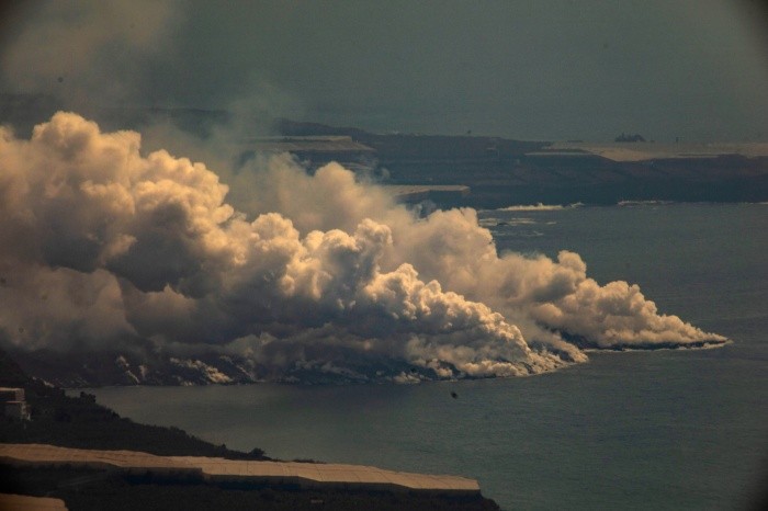 La lava que emana del volcán de la isla española de La Palma cae al agua en un caudal continuo y este jueves sigue ganando terreno al mar.Además se prevé un deterioro en la calidad del aire por cambios en los vientos en la zona de las islas Canarias.Por ello, los expertos piden a la población más cercana al volcán que extreme precauciones, sobre todo a partir del viernes, y en la población de Tazacorte ya se han medido valores altos de dióxido de azufre -por encima de las normativas sobre calidad del aire, aunque sin suponer un peligro para la salud- y hay olor a huevos podridos.En este municipio, donde el martes la colada de lava alcanzó el mar, se han medido puntualmente 500 microgramos de dióxido de azufre (SO2) por metro cúbico, aunque esta cota ha bajado ya a 300.Ahora se considera que el problema puede extenderse a Los Llanos de Aridane (los valores se sitúan en unos 100 microgramos por metro cúbico) y El Paso, por lo que se recomiendan precauciones especiales: permanecer en interiores, salvo necesidad, y utilizar mascarillas FFP2, sobre todo las personas con afecciones respiratorias, los ancianos, los niños y las embarazadas.Este aumento de las mediciones coincide con un incremento de las emisiones de SO2 desde el volcán, a 7.149 toneladas diarias, un valor relativamente alto.Mientras tanto, el magma fluye al océano en un caudal continuo, cae en forma de cascada y ha creado en la base del acantilado un delta con un frente amplio que ha alcanzado la cota de 24 metros en profundidad marina, según el Instituto Geográfico Nacional de España.Desde que la lava alcanzó el mar, la colada principal presenta "cierta estabilidad", con "desbordes en algunos puntos" y "algún dedo que se ha separado del eje principal", pero la tendencia es hacia la canalización del magma, de acuerdo con el Plan de Emergencias Volcánicas de Canarias (Pevolca).Y en el área de contacto del magma con el agua se forma una nube de vapor de agua y gases posiblemente tóxicos, un "penacho marino" que, de momento, se concentra en una pequeña área.Si bien el proceso eruptivo sigue su actividad, el resto de coladas están prácticamente inactivas, aunque desde esta mañana se ha constatado la aparición de un campo fumarólico en el flanco noreste.La estabilidad en la colada ha permitido acceder a los agricultores a sus fincas, dar de comer al ganado o que los evacuados pudieran ir a sus casas por razones de urgencia a recoger algo.Las personas evacuadas por la actividad del volcán de Cumbre Vieja se sitúan en unas 6 mil, mientras se mantiene el confinamiento en las poblaciones de San Borondón, Marina Alta, Marina Baja y La Condesa, así como las zonas de exclusión de 2.5 kilómetros alrededor del cono volcánico y de 2 millas marinas.Ante esta situación, el Gobierno regional del archipiélago de las Canarias ha aprobado un decreto ley con exenciones fiscales para los afectados, como un Impuesto General Indirecto Canario (IGIC) "cero" a la compra de inmuebles, terrenos y vehículos y la condonación de las tasas de patrimonio y de donaciones y sucesiones.Según los últimos datos del sistemas de satélites europeo de monitorización terrestre Copernicus, desde que el volcán entrara en erupción el 19 de septiembre la lava cubre 338.3 hectáreas, incluido el terreno que ha ganado al mar desde la noche del día 28, mientras la ceniza se extiende por mil 752.8 hectáreas.Hay ya 981 edificaciones afectadas, de ellas 855 destruidas, y daños en 29.8 los kilómetros de carreteras, de los cuales 27,4 están asolados.La altura actual de la nube de cenizas es de 5 mil metros sobre el nivel del mar.En cuanto a la sismicidad, los expertos de Pevolca indican que esta se mantiene en la misma zona de días anteriores y a profundidades de más de diez kilómetros, con un terremoto de magnitud 3.3 sentido con intensidad 2 como medición máxima, y también hay movimientos más superficiales en torno al núcleo de la erupción.El tremor es estable, aunque en algunas zonas cercanas al cono es de alta frecuencia y las deformaciones mantienen un patrón estable.El Instituto Geográfico Nacional ha localizado dieciocho terremotos en la zona sur de la isla, cuatro de ellos sentidos muy débilmente por la población.Si te interesó esta noticia y quieres saber más, entonces descarga y descubre INFORMAPlus, la aplicación digital de EL INFORMADOR, en donde tenemos contenidos exclusivos, seleccionados por nuestros editores, para darles una experiencia más completa a los lectores. Descarga la aplicación y pruébala GRATIS por treinta días. Para iOS: https://apple.co/35jaVgbPara Android: https://bit.ly/3gwVSEVSi eres suscriptor de EL INFORMADOR tu acceso está incluido, solicítalo al 33 3678-7777IM