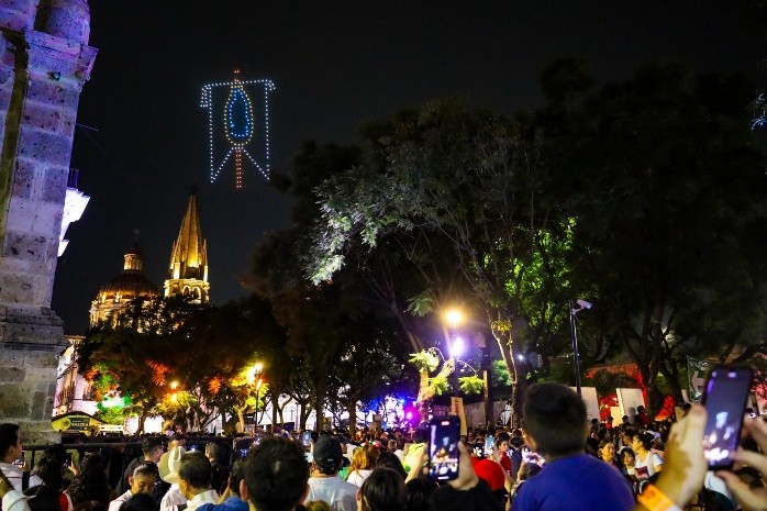 El verde, el blanco y el rojo ondeaban en la bandera postrada en lo más alto del asta. Por debajo el reloj del Palacio de Gobierno y la campana que sería hecha sonar por el gobernador de Jalisco en su penúltima Arenga.En ella, el mandatario estatal recordó que fue Jalisco la tierra donde se abolió la esclavitud y se instituyó el federalismo."Hoy las y los jaliscienses nos reunimos una vez más para festejar la conquista de nuestra libertad y nuestra independencia nacional. Hoy, desde el corazón de Jalisco, celebramos el orgullo de ser mexicanas y mexicanos. Hoy, en la tierra en la que se abolió la esclavitud y se construyó nuestro federalismo, conmemoramos a las mujeres y hombres que nos dieron patria y libertad", alzó el mandatario desde el balcón del Palacio de Gobierno.En su vitoreo recordó a Miguel Hidalgo y Costilla, así como a Josefa Ortiz de Domínguez, José María Morelos y a Leona Vicario, a Ignacio Allende, Aldama y a Rita Pérez Jiménez. Vitoreó también a Vicente Guerrero, Guadalupe Victoria y a Pedro Moreno, pero también a la capitana Manuela Medina, así como a José Antonio "el amo Torres" y a Gertrudis Bocanegra."¡Vivan las mujeres y hombres que nos dieron patria y libertad! ¡Viva el Estado Libre y Soberano de Jalisco!", instó el mandatario ante la Plaza de Armas.A los pies del Palacio de Gobierno acompañaron el grito al unísono por las y los héroes que nos dieron patria invitadas e invitados "especiales": funcionarios de distintas direcciones estatales y municipales y sus familias, así como organizaciones vecinales invitadas por distintas alcaldías, quienes ingresaron al área protegida por vallas mediante un código previamente entregado.Uno de los actos más aplaudidos de la noche fue la historia, "a voz de Josefa Ortiz de Dominguez", que narraba el recuento de la lucha por la libertad del pueblo mexicano.En ella "la corregidora" recordó cómo esta inició partir del descubrimiento de las conspiraciones de los liberales, ilustrada por un equipo de drones, que con sus luces tricolores conformaban las imágenes de "la corregidora", la campana de Dolores, el pendón estandarte de Hidalgo y, por supuesto, la bandera mexicana. La arenga fue cerrada por un espectáculo de fuegos artificiales, coordinados a los acordes del mariachi, que iluminaron el primer cuadro de la ciudad con estelas de luces de colores, donde el verde, el blanco y el rojo fueron protagonistas. MF