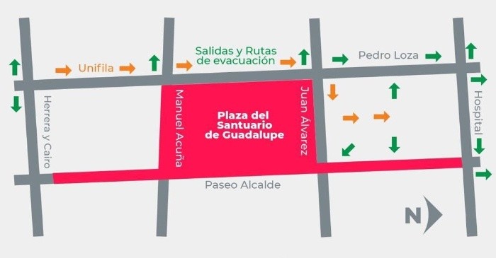 A partir de este martes y hasta la medianoche de mañana miércoles 12 de diciembre, la Policía de Guadalajara resguardará los alrededores del Santuario de Nuestra Señora de Guadalupe, con la finalidad de mantener el orden y la seguridad en torno a la celebración de la Virgen de Guadalupe.Serán 48 elementos de la comisaría, entre elementos pie tierra, ciclo policías y motociclistas, quienes realicen la vigilancia de las avenida Fray Antonio Alcalde y las calles Juan Álvarez, Hospital, Santa Mónica, Pedro Loza, Manuel Acuña y Herrera y Cairo, las cuales permanecerán cerradas al tránsito vehicular hasta la madrugada del jueves 13 de diciembre.Por su parte, la Unidad de Protección Civil y Bomberos Guadalajara informó que será colocado un puesto de mando en el atrio de la iglesia, donde se contará con personal de 10 dependencias municipales involucradas, con el fin de poder contar con toma de decisiones al momento en caso de requerir algún servicio que las involucre. Por parte de la Unidad, serán 120 elementos distribuidos en tres turnos.Además, se informó que se contará con personal de Análisis de Riesgos y de Supervisión Técnica quienes se encargarán de vigilar las medidas de seguridad en los establecimientos fijos y los puestos ambulantes, así como la instalación de rutas de evacuación.La Unidad Estatal de protección Civil y Bomberos Jalisco añadió que integrarán a nueve elementos de su corporación.Entre las medidas de seguridad compartidas por las autoridades se encuentran:-Ubicar al personal de Protección Civil, Seguridad Pública, Servicios Médicosy personal del DIF-Ubicar las rutas de evacuación y los puntos de reunión establecidos por el personal de Protección Civil-Asistir bien hidratado y alimentado.-Llevar ropa y calzado cómodo, acorde con el evento y las condiciones climáticas que se prevén.-Alejarse de los lugares donde se almacenen los juegos pirotécnicos-En caso de ir con menores, nunca dejarlos solos y procurar que vayan siempre identificados. Es aconsejable apuntar un teléfono de contacto anotado en su mano o en un papel en el bolsillo.NM
