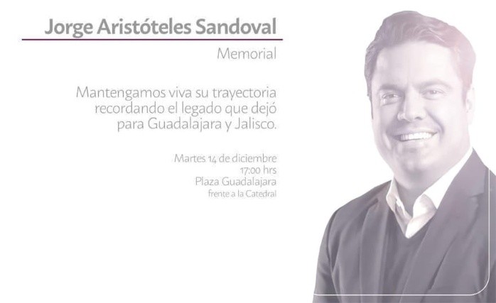 Amigos, familiares y colaboradores del exgobernador de Jalisco, Aristóteles Sandoval, llevarán a cabo este martes un homenaje para recordarlo a unos días de que se cumpla un año de su asesinato, ocurrido el pasado 18 de diciembre en un restaurante de Puerto Vallarta.El evento está proyectado para realizarse a las 17:00 horas en el atrio de la Catedral Metropolitana de Guadalajara, frente a la Plaza Guadalajara. Ahí, familiares del exmandatario y amigos ofrecerán un memorial para recordar a Aristóteles Sandoval como persona y el legado que dejó para la ciudad y el Estado.También compartirán algunas anécdotas y entregarán veladoras que serán colocadas frente a un retrato que permanecerá durante el memorial.Este será uno de la serie de eventos que se tienen preparados para honrar su memoria, pues este martes habrá también un homenaje en cabildo del Ayuntamiento de Guadalajara, mientras que el jueves se realizará otro evento dentro del PRI del Estado de Jalisco.Al cierre, tendrá lugar una misa en la Iglesia del Sagrado Corazón de Jesús en la Colonia Independencia el día sábado 18 de diciembre, fecha del aniversario luctuoso, la cual será impartida por el cardenal emérito Juan Sandoval Íñiguez.JM