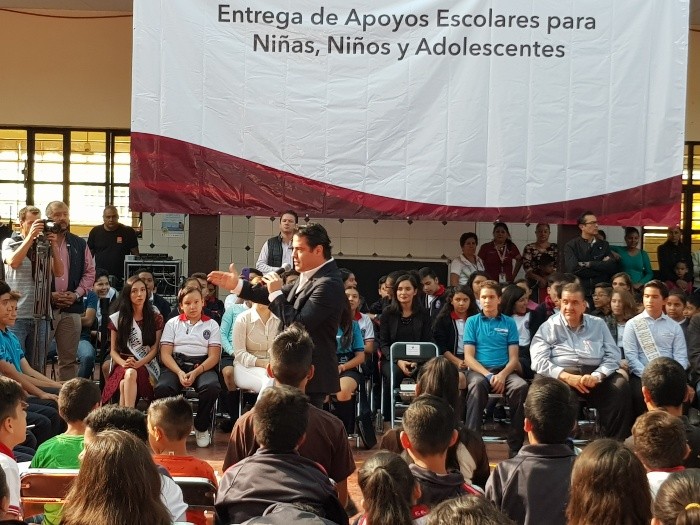 Esta mañana el gobernador del Estado, Jorge Aristóteles Sandoval hizo entrega del apoyo escolar para niños, niñas y jóvenes que desertaron o están en riesgo de desertar de sus estudios que suman un total de 32 millones 792 mil 296 pesos invertidos para este programa. Con esto, se beneficiarán a ocho mil 500 alumnos de 123 municipios de Jalisco, de los cuales mil 961, provenientes principalmente de la Zona Metropolitana de Guadalajara, regresaron de nueva cuenta a la escuela para continuar con sus estudios luego de desertar por falta de recursos económicos. "Cada peso invertido en educación es la mejor inversión para tener un mejor México, un mejor país y por eso quiero hoy quiero desearles todo el éxito para que puedan lograr sus sueños y aquí sólo pueden lograr sus sueños trabajando, estudiando y haciendo caso a sus padres pero también necesitan del apoyo y ese apoyo se los estamos dando", dijo Aristóteles Sandoval. Además del apoyo, el gobernador se comprometió a que la próxima semana se instalarían pintarrones electrónicos en la escuela Secundaria Juana de Asbaje, donde se llevó a cabo el evento de esta mañana y donde estuvo presente también Francisco Ayón, secretario de Educación en Jalisco, así como algunos de los alumnos que recibirían el beneficio. Los apoyos constan de cinco mil pesos para los alumnos que desertaron y a partir de hoy se reincorporan al sistema educativo y de tres mil 500 pesos para los alumnos en riesgo de deserción escolar para garantizar su permanencia en las aulas, beneficio que será entregado en dos exhibiciones durante un año. Lorena Arriaga, presidenta del sistema estatal de DIF Jalisco, señaló que las principales causas de riesgo para que los alumnos dejen de estudiar son, con 25 por ciento, la falta de recursos económicos; con 24 por ciento por enfermedad; 23 por ciento por falta de interés en el estudio y el 30 por ciento restante, otros temas como embarazo adolescente y "bullying", de acuerdo a un estudio realizado por la dependencia en 2015 "Con la ayuda de los DIF municipales estamos yendo a las escuelas por información de cuáles niños desertaron, con apoyo de Secretaría de educación vamos por ellos con los promotores de los DIF y hacemos una intervención y por cada niño que encontramos que estaba fuera del sector educativo hacemos un plan de restitución para que se les restituyan todos sus derechos", dijo Lorena Arriaga.Cristian Torres es uno de los alumnos que regresaron a estudiar gracias a los apoyos otorgados por el Gobierno de Jalisco, cuando estaba en segundo de secundaria tuvo que dejar la escuela porque fue diagnosticado con hipertiroidismo."Mi mamá me llevó al seguro y empezaron a checarme, ahí y descubrieron que tenía hipertiroidismo y me dieron tratamiento. Yo si quiero seguir estudiando por qué quiero estudiar mi Carrera. Ahora me siento muy contento de regresar a la escuela", dijo Cristian."Aparte de que va a regresar, no se va a quedar sin escuela. La ayuda que nos van a dar pues cuenta mucho porque a veces no nada más es uno, a veces son dos o tres hijos los que tenemos a un lado y tenemos que salir para los tres", dijo la señora Verónica Hernández en agradecimiento al apoyo brindado.Durante la administración de Sandoval Díaz se ha invertido un total de 99 millones 820 mil 296 pesos que han beneficiado a 28 mil 971 niñas, niños y adolescentes para continuar sus estudios.