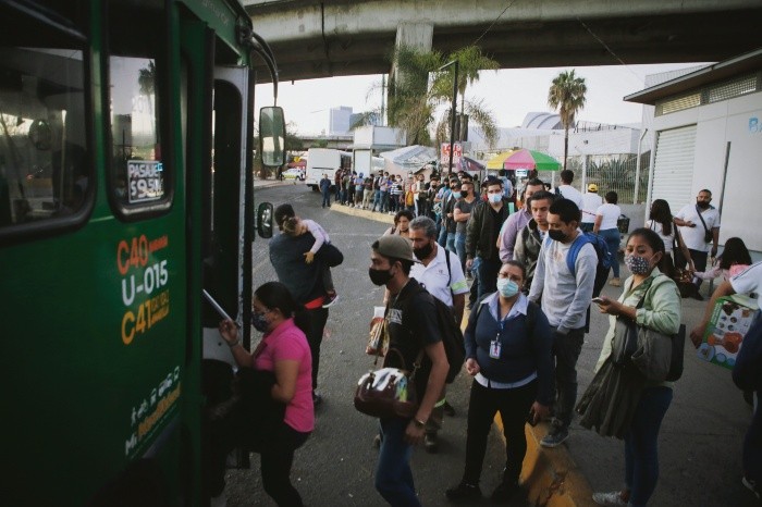 Ni los nuevos ajustes al botón de emergencia implementados por el Gobierno estatal fueron suficientes para evitar otra vez las aglomeraciones en el transporte público.Usuarios se quejaron ayer de las largas filas que hubo para abordar el Tren Ligero, sobre todo en las estaciones Juárez, Plaza Universidad y Periférico Sur entre las 19:00 y 20:00 horas, pese a que empresas y sector público implementaron salidas escalonadas de las 16:00 a las 19:00.“Estábamos muy amontonados, la verdad esto va a tronar”, dijo Arsenio Angulo.A las 19:23, el Sistema de Tren Eléctrico Urbano (Siteur) confirmó que puso en circulación más trenes “por la alta demanda de usuarios en las tres líneas”.También circularon fotografías y videos de otras personas que, con molestia, cuestionaron la medida de suspender el paso del transporte.Desde el viernes pasado, las rutas con más demanda en la metrópoli se vieron saturadas de trabajadores que pretendían tomar los camiones antes de que dejaran de pasar. Ante esto, el Ejecutivo estatal prometió aumentar las unidades en López Mateos y Periférico Sur.Sin embargo, a las 19:00 en este último punto decenas de personas esperaban en las paradas los derroteros 623, 619, 187 y 186. “Hay largas filas, los camiones están llenos. Hoy (ayer) también hay mucha gente”, dijo Francisco, empleado de una cadena de hamburguesas de Centro Sur.Mientras se llenaban los vagones y camiones, un contingente de cientos de choferes de autos de plataforma se manifestó con un recorrido desde el Estadio de las Chivas hasta Casa Jalisco para mostrar al gobernador su inconformidad por impedirles laborar durante las noches y los fines de semana.José de la Luz Velázquez, empleado de una refresquera en Centro Sur, lamentó tener que pasar ayer por otro momento con aglomeraciones al salir del trabajo. “El transporte sí se complicó, había mucha gente, no se dan abasto, hay mucho descontrol”, dijo.“Sí afectó más, hay menos camiones y es la misma gente de diario. Las aglomeraciones son de las 16:30 horas a las 20:00 horas. Todos van llenos hasta el tope”, explicó Mario Alberto, empleado de una ruta de transporte de Periférico Sur.“Me tardé como media hora en la parada y en llegar a la casa como dos horas. El problema en la tarde se complica”, sostuvo Beatriz, empleada de una tienda.Pero ayer no fueron sólo rutas de camiones, usuarios del Tren Ligero se quejaron de los vagones abarrotados y la espera.“Te invito a que te subas al Tren Ligero o camiones por la mañana y te des cuenta cómo van. Esta medida no está bien planeada”, escribió Marcela Sánchez al gobernador.“Un bien social se ha convertido en castigo. ¿Quién pagará por ese desastre en la movilidad? Vías saturadas, gente sin poder llegar a casa. El transporte público es un derecho fundamental que no puede ser negado de manera arbitraria”, dijo una tapatía en redes sociales.Salidas establecidas desde ayer por el Gobierno estatal:Centenas de choferes de la Unión de Conductores de Jalisco realizaron ayer una manifestación para reiterar su inconformidad contra el Gobierno del Estado porque no les permite laborar a partir de las 21:00 horas de lunes a viernes y todo el fin de semana, debido a la aplicación del botón de emergencia para evitar más contagios de COVID-19.Los inconformes se dijeron discriminados, pues los taxistas tradicionales sí pueden prestar el servicio en cualquier horario.Hubo una confrontación de integrantes de la marcha con elementos de la Policía Vial, quienes a la altura de la Glorieta de la Minerva intentaron impedir que llegaran a Casa Jalisco.Los vehículos avanzaron con circulación lenta desde el Estadio de las Chivas, en Zapopan, y tardaron más de una hora en llegar a la residencia del gobernador.Ya en el lugar ocuparon los carriles en ambos sentidos de Avenida Manuel Acuña y entregaron un pliego petitorio para reiterar su molestia con las restricciones a su servicio.El viernes, cuando comenzó el botón de emergencia, podían trabajar sólo hasta las 20:00 horas y el Gobierno amplió una hora el límite.JL
