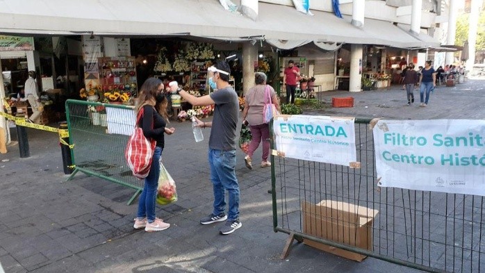 Debido a que no cumplían con las medidas sanitarias, 32 comerciantes de tianguis fueron suspendidos por autoridades municipales de Guadalajara.El Ayuntamiento tapatío reportó que intervinieron en 90 tianguis con filtros sanitarios, lo que dejó como saldo 138 apercibimientos y la suspensión a la treintena de vendedores que no respetaron las disposiciones sanitarias.En total las autoridades municipales han emitido mil 918 exhortos a personas para que cumplan las medidas y elementos de la Policía de Guadalajara han disuelto 472 reuniones desde el inicio de las actuales restricciones para prevenir contagios de COVID-19.El personal de Inspección y Vigilancia ha visitado casi 3 mil negocios, han realizado seis clausuras; tres a bares, una franquicia de hamburguesas, un negocio de alitas y una venta de cerveza anexo a restaurante, se dejaron 40 apercibimientos, hubo cinco infracciones y un resello.Además, han realizado trabajos de supervisión en 92 mercados municipales y en los cinco panteones municipales, a la vez que se cerraron espacios públicos como el camellón de Chapultepec, Parque Revolución, Plutarco Elías Calles, Normalistas, parques lineales, Paseo Alcalde, Pablo Neruda y Montevideo, entre otros.Igualmente, se mantuvieron cerradas 49 unidades deportivas y en 35 que no cuentan con barrera perimetral se hizo vigilancia especial, invitando a 725 personas a retirarse.Juan Manuel Munguía, coordinador de Desarrollo Económico y Combate a la Desigualdad, informó que ante la gran actividad económica que se genera en el Centro Histórico de Guadalajara se colocaron 21 filtros sanitarios, y en los tianguis de El Baratillo y Polanco se implementó una vigilancia para ingresar.LS