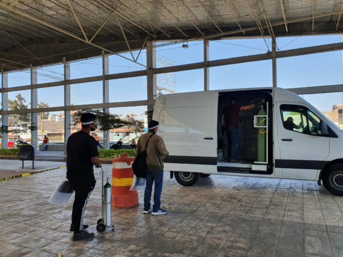 En coordinación con el ayuntamiento de Guadalajara, su Unidad de Protección Civil y la comisaría tapatía, “Oxígeno Sobre Ruedas” ha logrado llevar oxígeno a alrededor de 300 familias, desde que comenzó a operar “de manera ambulante” el pasado 24 de enero, ante la escasez del producto en las distintas tiendas que lo comercializan.Todos los días comparten la ubicación y el horario de recarga en sus redes sociales. Media hora antes de su llegada personal del ayuntamiento de Guadalajara ordenan a las personas para que tomen su debida distancia, además de que les regalan caretas de protección mientras esperan su turno, el cual es asignado por medio de tarjetas que entregan los encargados de “Oxígeno en Ruedas”.Los acompañan también elementos de la Unidad de Protección Civil y Bomberos del municipio para verificar que no existan riesgos durante las recargas y que los tanques a rellenar estén en buen estado y que cumplan con las disposiciones que garanticen que estos son de uso médico, mientras que la comisaría vigila los alrededores para resguardar la seguridad de los asistentes que buscan rellenar sus tanques.El vehículo en el que viajan lleva en su interior los tanques que surten a los más pequeños, cuya capacidad alcanza para rellenar entre 60 a 65 tanques portátiles de 425 litros y 682 litros por día, con un costo de 250 pesos por recarga, explicó Marco Díaz, quien forma parte de Oxígeno en Ruedas. Aunque por ahora visitan solo un punto por día, ya analizan la posibilidad de establecer al menos dos puntos de recarga diarios, añadió.“Esperemos que no nos suban a nosotros el oxígeno para poder seguir ofreciendo las recargas a ese precio, porque nosotros también tenemos que recargar. A nivel federal no hemos hablado sobre alguna regulación, pero Cofepris Jalisco fe quien nos dio el visto bueno para poder trabajar, sin ellos y sin Protección Civil, no podríamos estar haciendo esto”, añadió Díaz.El director de la Unidad de Protección Civil y Bomberos Guadalajara, Felipe López Sahagún, indicó que los puntos donde se realizarán las recargas se eligen de acuerdo al espacio en el cual pueda ordenarse a las personas sin exponerlas a riesgos de contagios de coronavirus, que la recarga no represente un peligro para las zonas habitacionales, que esté bien ventilado y que no reciba la luz directa del sol, por lo cual, la semana pasada las recargas se hacían solo de noche.Sin embargo, este lunes, dijo, se generaron las condiciones para que la recarga se hiciera en el Parque San Jacinto, a las 14:00 horas. Ahí, al menos una hora antes de la llegada del oxígeno ya había alrededor de 20 personas formadas en espera de un turno.Una de esas personas era Francisco, quien tenía desde las 6:00 am buscando oxígeno para su papá, quien hace dos semanas fue diagnosticado con coronavirus. Los negocios que visitó, dijo, no tenían el producto, pero en redes sociales supo que “Oxígeno en Ruedas” llegaría este lunes al parque San Jacinto, en Guadalajara.Gastó al menos 300 pesos en taxis en busca de recargar el tanque de 425 litros que su familia rentó el viernes por dos mil pesos a la semana, pero a las 10:30 de la mañana ya estaba en espera del oxígeno. Fue el primero en llegar, y ahí esperó a que llegara el negocio móvil aún con duda de que fuera una broma. El pequeño tanque, contó, le dura a su papá alrededor de seis horas corridas, “pero se lo ponemos por ratitos de media hora en lo que le levanta la respiración y se refuerza con un concentrador que le conseguimos para que el oxígeno le dure”, dijo.Jonathan Pulido por su parte llegó al parque alrededor de las 11:00 horas, fue el segundo en formarse. Él acudió con un tanque de 682 litros que usualmente llena su familia para que su abuelito pueda seguir respirando, pues debido a un padecimiento de sus pulmones debe usar el oxígenos de por vida ya que estos solo trabajan al 40%. Sin embargo, debido a la escasez se ha complicado llenarlo de manera habitual, por lo que, Oxígeno en Ruedas no solo representa una esperanza para las familias que tienen pacientes con complicaciones por COVID-19, sino también a quienes lo requieren permanentemente.LS