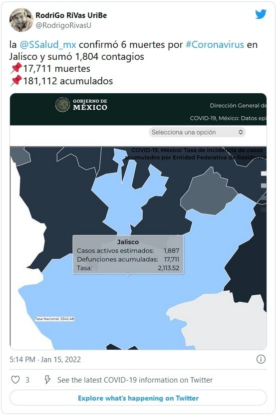 El sistema Radar Jalisco notificó este sábado dos mil 780 casos más de COVID-19 con lo que suman cuatro días consecutivos rebasando el máximo de contagios a nivel estatal desde que inició la contingencia sanitaria. Subió a 425 mil 357 el total de personas afectadas por el virus en la entidad.También se da cuenta que fueron descartadas cinco mil 534 pruebas aplicadas a personas con sospecha de contagio.Además, se confirmaron seis muertes más provocadas por la enfermedad, suman 79 fallecimientos en lo que va del año; el acumulado llegó a 17 mil 711 defunciones a nivel estatal.JM