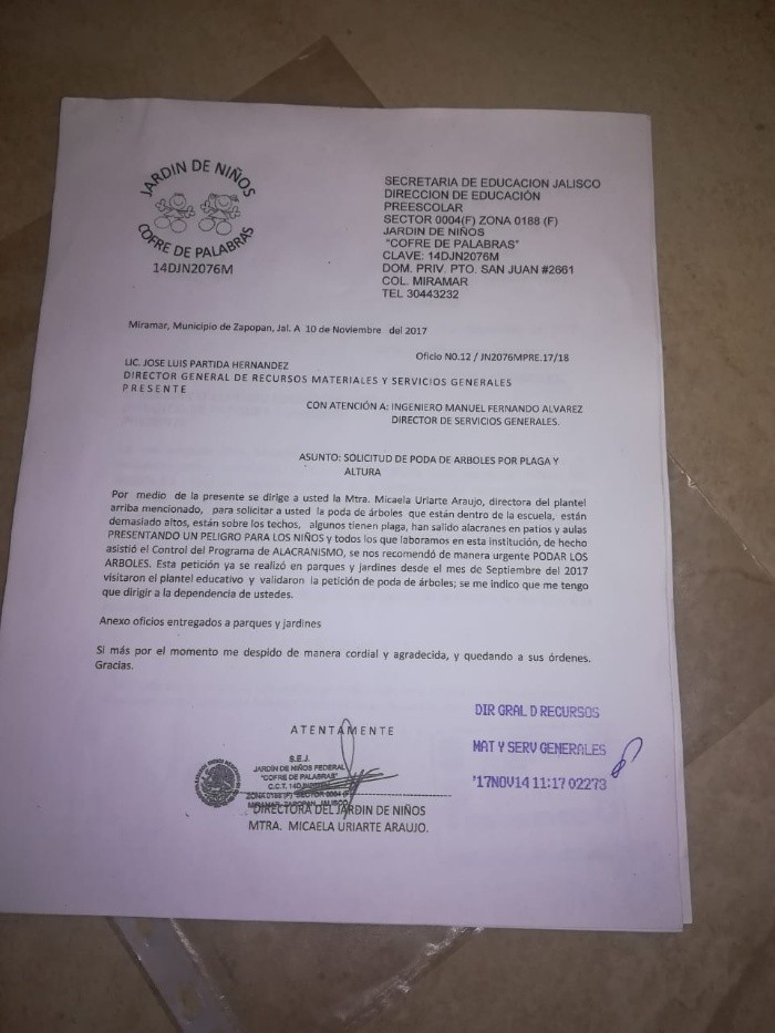 Raquel Torres, presidenta de la asociación de padres, detalló que desde hace por lo menos dos años ya habían solicitado el apoyo para dar mantenimiento a la barda y la poda de árboles. Refirió que algunos de los padres se organizaron y lograron rehabilitar parte del muro, pero no fue suficiente para evitar el derrumbe registrado esta mañana, además elementos de Protección Civil de Zapopan detectaron un socavón a un costado de la barda que colapsó.