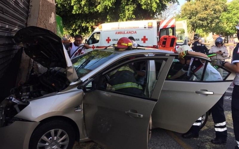 Incrustado en un inmueble, terminó un camión del transporte público en la Zona Centro de Guadalajara después de haber chocado contra un auto particular conducido por un hombre de 74 años; hubo 16 personas lesionadas, informó Protección Civil y Bomberos municipal.El hecho vial tuvo lugar en el cruce de Mariano Bárcena y Herrera y Cairo poco después de las ocho de la mañana. Personal de la dependencia llegó al cruce donde localizó a un camión de la ruta 52-A, el cual se había impactado en contra de un Chevrolet Aveo blanco, informó César René Saldaña, comandante de Protección Civil y Bomberos Guadalajara.El camión circulaba en dirección hacia el poniente sobre Herrera y Cairo cuando al llegar al cruce se impactó en contra del Aveo.El choque provocó que el camión se fuera hacia un inmueble de locales comerciales ubicado en la esquina; sin embargo, los espacios se hallaban abandonados. El auto particular era tripulado por dos hombres, uno que conducía con una edad de 74 años y en el asiento del copiloto iba su compañero, de 53 años. El copiloto fue trasladado por paramédicos de la Cruz Roja a la clínica Ayala; mientras que el conductor firmó desistimiento.En el autobús resultaron 15 personas lesionadas, de los que ocho esperaron atención por parte de la aseguradora; el resto se retiró del lugar.Peritos de Obras Públicas acudieron al lugar para valorar el estado del inmueble y descartar daños estructurales o apuntalar la finca.Personal de la Policía Vial se encargó de indagar las causas del incidente para fincar las responsabilidades correspondientes.NR