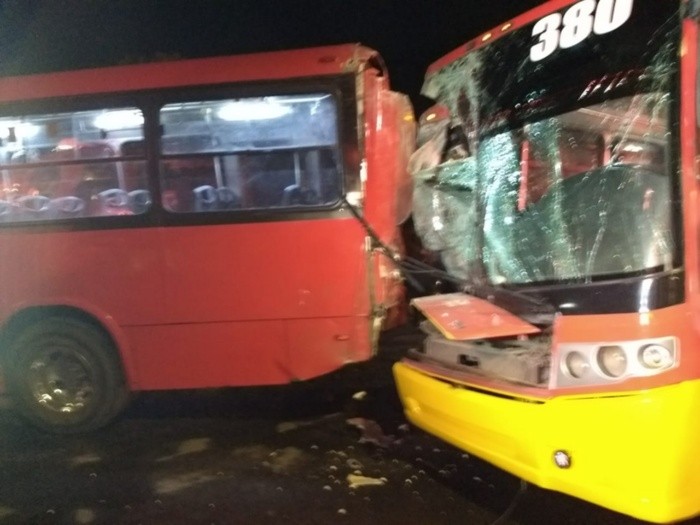 La noche de este miércoles se registró un choque entre dos camiones de SITRAN de la ruta 380; al menos 15 personas resultaron lesionadas.El accidente ocurrió sobre la calle Mariano Salas y Periférico, en la colonia Jardines de la Barranca, en Guadalajara.Al sitio acudieron Bomberos de Guadalajara y servicios médicos para atender a los heridos, la mayoría con lesiones de regulares a leves.LS