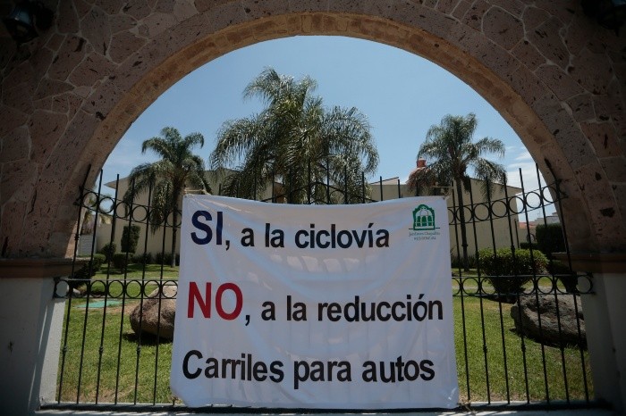 Rodando entre los camiones y autos, Juan Vergara recorre a diario en bicicleta avenida Guadalupe desde San Pablo hasta el cerro de El Colli, lo que ya le ha hecho padecer accidentes: hace cuatro meses lo aventó una moto y fue a dar al suelo, por lo que está de acuerdo en la ciclovía. “Casi todos vamos para allá (en bicicleta), aquí se ocupa mucho”.No obstante, vecinos de 42 cotos en los alrededores de avenida Guadalupe demandaron a las autoridades de Zapopan modificar el proyecto sobre dicha arteria, pues vaticinan que como se ha planteado es riesgosa para ciclistas y colapsará el tráfico, manifestó su vocero, Ricardo Oliveras Ureña.“Nos han pedido entablar con el Ayuntamiento un diálogo, pero no se ha podido dar, las autoridades han estado cerradas a recibirnos. Queremos replantear el proyecto para hacer una ciclovía segura y no una ciclovía impuesta”.El vocero dejó en claro que no están en contra de la construcción de carriles para bicicletas, sino que quieren que instalen la infraestructura en el camellón, lo cual se puede hacer sin la necesidad de derribar los árboles.La ciclovía se construye en los carriles que circulan hacia el Periférico, por lo que tomará el espacio de uno, que es actualmente utilizado por el transporte público.Consideraron que, así como se plantea, será riesgosa para los ciclistas porque en la avenida hay 18 cotos con ingreso y salida controlados, 10 centros comerciales y más de 300 negocios locales con estacionamientos de entrada de frente y salida en reversa.“Implica que puedas tener en puntos ciegos al ciclista e incluso que el auto salga en reversa hasta el tercer carril”. Esto puede causar choques e interrupciones constantes del flujo vial.Además hay colegios donde los padres dejan y recogen a sus hijos en el primer carril, que al regreso a clases será en el segundo carril, por lo que solo quedará libre uno para que circule el transporte público y vehículos particulares.Para demostrar sus pronósticos, los vecinos han llevado a cabo varios simulacros en los que estacionan autos en dos carriles para demostrar lo que ocurrirá al regreso a clases.Estos bloqueos serán constantes hasta que tengan respuesta de las autoridades. “No aceptaremos que quiten un carril, porque es el carril del transporte público actual”.Algunos pocos vecinos, como Carlo Paolo Rivera, están de acuerdo en la construcción de ciclovía, pues este tipo de infraestructura debe ser fomentada. “Opino que sí lo hagan y que la gente entienda que ahora hay menos espacio, ahora que lo veo, la mayoría de la gente no ocupa tanto ese carril”.LS