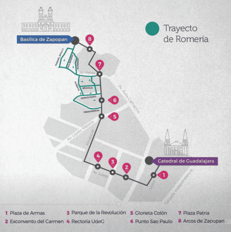 La Secretaría de Movilidad informó que debido a la celebración de la Romería de la Virgen de Zapopan habrá cierres viales en el Centro de Guadalajara.