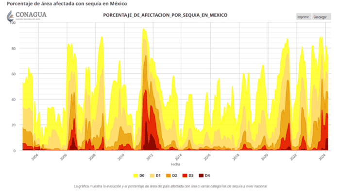 El Monitor de Sequía de México, del Servicio Meteorológico Nacional, administrado por la Comisión Nacional del Agua (Conagua), difundió su reporte al corte del 29 de febrero.En dicho reporte, publicado a inicios de marzo, se detalla que 82 municipios de Jalisco experimentan algún grado de sequía. De éstos, 6 están sufriendo sequía extrema. La Sociedad Meteorológica Norteamericana define la sequía como "un período de clima anormalmente seco, cuya duración es suficientemente prolongada como para causar desequilibrios hidrológicos significativos".Los municipios que se encuentran clasificados en D3, es decir en sequía extrema son: Ayotlán, La Barca, Colotlán, Degollado, Huejúcar y Santa María de Los Ángeles.Para hacer este monitoreo, se utilizan las redes de observación tales como estaciones automáticas, observatorios sinópticos, radares, estaciones de radiosondeo y estaciones receptoras de imágenes de satélite. Uno de los fenómenos climáticos que más afecta a las actividades económicas del país es la sequía, el SMN se encarga de detectar el estado actual y la evolución de este fenómeno. Para ello se apoya en el Monitor de Sequía en México.*Mantente al día con las noticias, únete a nuestro canal de WhatsApp aquí: https://whatsapp.com/channel/0029VaAf9Pu9hXF1EJ561i03MV