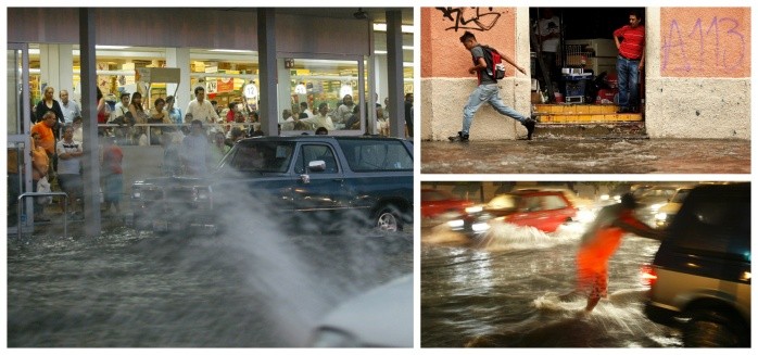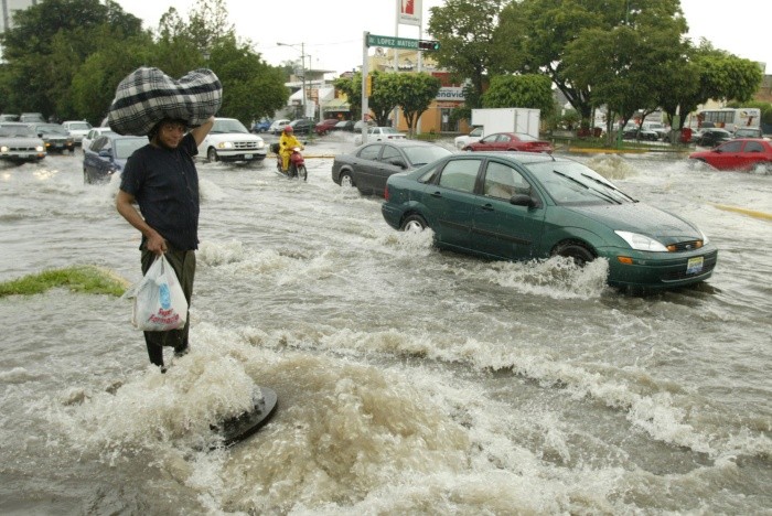 Las lluvias en Guadalajara no conocen puntos medios. O llovizna apenas, en breves tempestades incómodas que ni siquiera sacuden la melancolía de nadie, o se desempiedra el cielo en un estrépito de fin del mundo que sume a la ciudad entera en el caos, y que vuelve a la vida invivible. Cuando llueve en Guadalajara los tapatíos saben que será difícil llegar a casa, que el transporte público no pasará o que vendrá saturado, que las calles estarán inundadas y que ciertas zonas -como en Plaza del Sol-, se convertirán en ciénagas; que sentiremos los calcetines chapaleando como si tuviéramos un océano dentro del zapato, que los semáforos responderán a una lógica incomprensible, y que habrá choques inexplicables en López Mateos, en la Calzada Independencia, en Periférico, en todas partes.Los tapatíos saben también que en ocasiones especialmente álgidas, la lluvia representa también un asunto de vida o muerte. Con coladeras y alcantarillas abiertas como hocicos de coyote, calles convertidas en torrentes de lodo y ramas despedazadas, autos arrastrados por la corriente, fraccionamientos que se convierten en lagunas y lo pierden todo, tuberías regurgitando excrementos, personas desaparecidas a las que se lleva el agua, desgracias y fallecidos, a veces la lluvia en Guadalajara se tiene que sobrevivir. Pero también la lluvia ha traído consigo sucesos que sobrepasan la comedia, la tragedia y la vida misma, y que más bien parecen un asunto de la magia, lo ridículo, y hasta la ficción. Estas son algunas de las muchas cosas tan extrañas que ha dejado la lluvia en Guadalajara, y que se quedaron para siempre en el imaginario tapatío. El 10 de junio del 2018, una lluvia catastrófica sacudió Guadalajara. Llovió tanto, y tan intenso, que las vías del Tren Ligero, a la altura de la estación Dermatológico, quedaron inundadas.Los vagones se quedaron atascados en el agua, y los pasajeros no tuvieron más remedio que nadar para salir de aquel atolladero. Desde la calle, las personas arrojaron salvavidas e incluso tablas de surf para que la gente pudiera escapar de los vagones inundados. El 30 de junio del 2019, el cielo se desbordó en una granizada inusual que dejó varias zonas de Guadalajara cubierta bajo capas de hielo. Los tapatíos despertaron con las calles tapizadas de un manto blanco que inmovilizó avenidas, generó atascos y lodazales, y que puso en jaque a las autoridades locales.El Informador, en su momento, reportó 1.5 metros de hielo en las avenidas principales de la zona metropolitana de la ciudad. Durante las lluvias del pasado 19 de agosto del año en curso, una lluvia intensa desordenó, como siempre, la zona de Mariano Otero y Plaza del Sol. Las calles quedaron inundadas, pero lo que nadie esperó nunca fue ver un tinaco gigantesco navegando a través del cauce turbio de la avenida, siguiendo un trayecto insospechado, y chocando con los vehículos que se le atravesaban en su paso.Intransigente, se impactó de frente con un camión, se saltó los semáforos y los camellones, siguió y los conductores horrorizados maniobraban de cualquier modo para esquivarlo, hasta que aquel bólido silencioso se perdió para siempre en el río de un solo día de Mariano Otero. "El icónico elefante del Centro Magno de Guadalajara fue encontrado fuera de su lugar y con las patas al cielo, después de los fuertes vientos y lluvias que azotaron la ciudad en la madrugada de este sábado 22 de julio".Así lo reportó El Informador, cuando, tras una fuerte tormenta nocturna que casi alcanzó los 100 km por hora, el icónico elefante del Centro Magno se desprendió de su sitio, y terminó patas arriba en una imagen que sacudió a las redes sociales. Plaza Patria es un lugar recurrente de inundaciones. Las tiendas, locales y escaparates suelen verse cubiertos de aguas ante cualquier lluvia que supere la media aceptable para nuestras calles, e incluso aparecen cascadas repentinas.No obstante, hubo una ocasión especial en la que, mientras la plaza comenzaba a cubrirse de agua, unos músicos ingeniosos decidieron tocar la icónica melodía "My Heart Will Go On", del Titanic, lo que convirtió en comedia la realidad de la ciudad pésimamente urbanizada. Entre otros sucesos memorables que dejaron las lluvias en Guadalajara, y que se inmortalizaron en redes, se recuerda el del kayakista de Polanco, que sin importarle que su calle de todos los días estuviese inundada recurrió a su ingenio, y se puso a navegar a través de su colonia.En otra lluvia del pasado, un nadador desconocido, motivado por la inspiración, mostró al mundo entero sus habilidades de natación, y deleitó a los peatones atascados en los andenes del macrobús, desafiando a la corriente impenitente de la Calzada Independencia. Estas son solo algunas de las cosas que la lluvia ha dejado, y que seguirá dejando cada temporal cuando convierte en mares, ríos y lagunas las calles de Guadalajara. FS