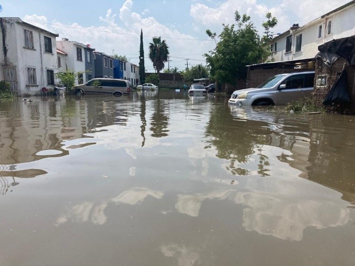La colonia Geovillas La Arbolada, ubicada sobre avenida Concepción en Tlajomulco, quedó bajo el agua después de la tormenta de este miércoles por la tarde. Un día después de la emergencia, el nivel se mantenía a casi un metro de altura y decenas de familias perdieron sus bienes a causa de la inundación.Los vecinos mencionan que el fraccionamiento se inundó en otras ocasiones, pero nunca como la tormenta de este miércoles. En algunas casas los dueños colocaron protecciones para contener el flujo del agua, pero de nada sirvió en esta ocasión porque en cuestión de minutos el nivel subió hasta superar el metro de altura en algunas partes del coto. “Fue en cuestión de 20 minutos que agarró todo este volumen y ya no bajó. Se ve en los muros como subió hasta la mitad de las casas. Todo fue muy intenso, toda la noche”, expresó la señora Adela Ibarra, quien con una bomba trataba de drenar el agua que se metió a su domicilio.Al sitio llegó personal del ayuntamiento de Tlajomulco quienes con bombas trataban de sacar el agua de las calles de Geovillas, líquido que era lanzado al canal pluvial ubicado a espaldas, en la avenida Champagnat, contiguo a Real del Valle.El personal del ayuntamiento llegó desde la mañana, pero no pudieron iniciar las labores de limpieza porque el agua se estancó. En el Centro Administrativo Valles, ubicado a 100 metros, la autoridad municipal inició el reparto de despensas a los damnificados y la entrega de kits de limpieza. Trabajadores del DIF realizaron un censo de las casas siniestradas.El municipio informó que fueron 163 casas inundadas tan sólo en este fraccionamiento. Las calles con más estragos fueron Cofre de Perote, Cordillera de los Andes, Malinche e Iztaccíhuatl.“La inundación viene de aquí mismo, del fraccionamiento. Atrás hay una bomba que saca el agua de Real del Valle y por eso siempre se inunda aquí, porque toda el agua que sale de allá cae aquí (…) perdí el refri, estaba flotando en la casa, el coche se me inundó, la tele… todo lo perdí”, expresó Cristian Sánchez, vecino de la colonia.MF