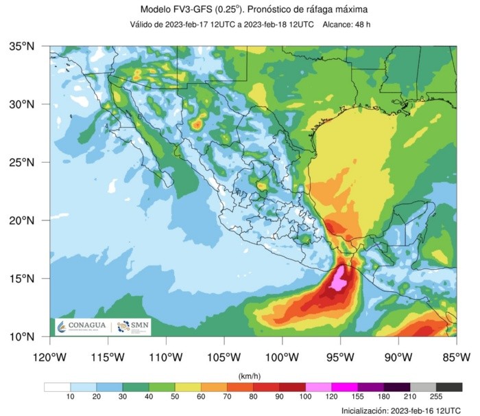 El Servicio Meteorológico Nacional dependencia de la Comisión Nacional del Agua (Conagua), dio a conocer que este jueves entró el frente frío Número 33, mismo que se está extendiendo sobre el norte de Veracruz y se desplazará gradualmente hacia el sur del Golfo de México y el sureste del país. Esto provocará el descenso de las temperaturas entre los -15 y los 0 grados, provocando lluvias, rachas fuertes a intensas de viento y caída de nieve o aguanieve en ciertas sierras de la República Mexicana.La conagua indicó en su mapa que el frente frío tendrá interacción con un canal de baja presión, además de las corrientes en chorro polar y subtropical, por lo este fin de semana varios estados del país registrarán bajas temperaturas, incluido Jalisco. Por su parte las temperaturas máximas serán de 35 a 40 °C en los estados de Nayarit, Jalisco, Colima, Michoacán, Guerrero, Oaxaca, Chiapas, Veracruz, Campeche y Yucatán, y de 30 a 35 °C en Sinaloa, Tamaulipas, San Luis Potosí, Hidalgo, Puebla, Morelos, Tabasco y Quintana Roo.MF
