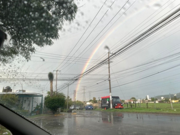 Una fuerte lluvia desordenó el amanecer del sur Guadalajara este viernes 21 de julio, con el saldo de varias avenidas inundadas, calles intransitables, tráfico pesado, y carros varados.No obstante, en medio del caos, una imagen resplandeció en el horizonte nublado: un arcoíris. Ocurrió después de la lluvia, y pudo verse en varias partes en el sur de la ciudad.Diversos usuarios en redes sociales compartieron las imágenes que tomaron del fenómeno meteorológico, aquella paleta multicolor haciendo contraste con el firmamento obscurecido, mientras el sur de Guadalajara no se daba abasto con el estrépito dejado tras la lluvia. El arcoíris aparece en el cielo debido a la reflexión de la luz del sol sobre las gotas de agua suspendidas y originadas por la lluvia. El fenómeno "descompone", separa la luz en sus propiedades verdaderas, que son los diversos colores que vemos plasmados en el cielo. En realidad el arcoíris tiene forma circular, situación que no puede apreciarse a menos que este sea observado desde una zona muy elevada.En conclusión, cuando el sol atraviesa las gotas de lluvia, estas funcionan como pequeños primas que separan la luz, y la dividen en todos sus colores. Es necesario que llueva, que haya luz, y que esta misma luz atraviese la lluvia en un ángulo específico. A través de redes, tapatíos también informaron sobre el estado de las calles, con inundaciones y caos vial en las siguientes zonas:Las lluvias durante la madrugada han sido la constante en estos días. Se espera un viernes de sol, siendo la mayor hora de lluvia alrededor de las 9 de la noche, con tan sólo un 24% de probabilidad de que ocurra. FS