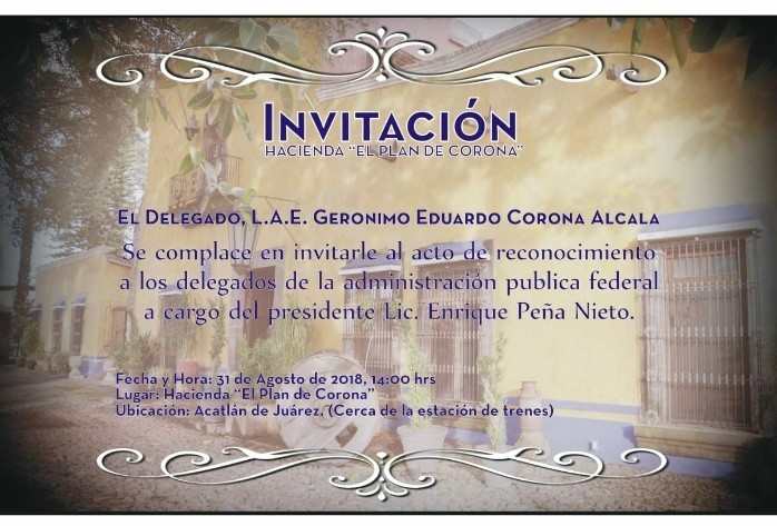 El martes 28 de agosto por la mañana, entre 25 y 30 empleados federales de Liconsa en Jalisco salieron de las instalaciones de la dependencia a bordo de siete camionetas oficiales. No se dirigieron a asignaciones propias de su labor, sino a trabajar en el rancho familiar de Gerónimo Corona Alcalá, el gerente de esa paraestatal en el Estado. Desde la calle Parres 1668 en el Álamo Industrial, viajaron hasta la “Hacienda El Plan de Corona”, en el municipio de Acatlán, sitio en donde al menos dos veces los empleados públicos han ido a “enchular” el rancho previo a un convite.La última vez fue este martes, día en que Corona Alcalá ordenó a los trabajadores de Liconsa darle mantenimiento, de cara a una “fiesta de despedida” con la que este viernes 31 de agosto agasajará a los delegados del Gobierno federal.A partir de un seguimiento a los trabajadores, este medio corroboró que las placas de las unidades rotuladas que el martes salieron de Liconsa corresponden a las de los vehículos que ingresaron al rancho. Uno de ellos incluso transportaba tres palmas ornamentales para la finca.Si la cronología no se visualiza correctamente PULSA AQUÍComo empleados de mantenimiento de Liconsa, los servidores públicos realizaron labores de fontanería, jardinería, alumbrado, pintura, albañilería y demás. La instrucción fue regresar a sus labores sólo hasta concluir la asignación en Acatlán. De acuerdo con imágenes satelitales, el rancho tiene una extensión de unas 100 hectáreas y en él incluso hay cabezas de ganado. Pero esta no es la primera vez que eso ocurre. Ya existe una queja, interpuesta el 21 de agosto ante el Sistema Integral de Quejas y Denuncias Ciudadanas (Sidec), por el uso de vehículos oficiales, combustible y servidores públicos para dar mantenimiento a la “Hacienda El Plan de Corona” previo a otra fiesta que se dio el fin de semana pasado. El folio es 49108/2018. Esas acciones implican una violación a la Ley General de Responsabilidades Administrativas, cuyo Artículo 53 aclara que el funcionario que autorice o solicite para sí mismo el uso de recursos públicos, materiales, humanos o financieros, comete el delito de peculado. “La diferencia con una paraestatal como Liconsa es que la sanción puede ser más grave cuando se utilizan recursos públicos de aquellas dependencias especializadas en atender temas de carácter social, por el tipo de ejemplo que deben dar estos servidores públicos”, dijo al respecto Angélica Cázares Alvarado, académica de la Universidad de Guadalajara (UdeG).En la invitación al festejo, convocado a partir de las 14:00 horas de hoy, se lee: “El delegado L.A.E. Gerónimo Eduardo Corona Alcalá se complace en invitarle al acto de reconocimiento a los delegados de la administración publica (sic) federal a cargo del presidente Lic. Enrique Peña Nieto”.“Se les espera en la gerencia de Subproducción y Mantenimiento, en este momento”. Ese mensaje llegó a los empleados federales de Liconsa Jalisco, por medio del sistema interno de comunicación que tiene la paraestatal. Esa es una de las vías que ha utilizado Gerónimo Corona Alcalá, gerente en el Estado, para ordenar a los trabajadores de la dependencia que acudan a realizar labores de mantenimiento a su rancho “Hacienda El Plan de Corona”, en Acatlán, Jalisco. Les ha solicitado que den mantenimiento a la propiedad de su familia al menos en dos ocasiones previo a la celebración de fiestas. Por los trabajos que antecedieron a la fiesta realizada el 21 de agosto, una denuncia fue presentada el mismo día ante el Sistema Integral de Quejas y Denuncias Ciudadanas (Sidec), con número de folio 49108/2018. En dicha queja se expone el uso de vehículos oficiales, combustible y empleados federales para dar mantenimiento al rancho familiar. En esa ocasión, cerca de 40 empleados de mantenimiento de la paraestatal fueron utilizados para un fin particular desde el viernes 17 y hasta el lunes 20 de agosto. Realizaron labores de limpieza, jardinería, pintura y resanado. A ese evento acudió el director general de Liconsa a nivel nacional, Abelardo Manzo González. Pero también se presentaron el delegado de la Secretaría de Gobernación en Jalisco, José Luis Mata Bracamontes, y Gabriela Vázquez Flores, delegada de la Procuraduría Federal del Consumidor (Profeco) en la Entidad, entre otros.Un día después, Rosa Leticia Rojas Uribe, titular del Área de Quejas de la Secretaría de la Función Pública (SFP), confirmó al denunciante, vía correo electrónico, que se inició una investigación sobre las irregularidades expuestas. Para ello, la instancia de quejas solicitó información adicional y le asignó el número de expediente DE/127/2018. Pese a ello, esta semana Corona Alcalá volvió a utilizar empleados federales, combustible y vehículos oficiales para rehabilitar el rancho de su familia. Esta vez para una fiesta de “despedida” que dará hoy viernes 31 de agosto a delegados federales del Estado. El martes pasado, más de 25 empleados federales de Liconsa colocaban macetas, limpiaban, podaban y hasta pintaban las paredes exteriores de la hacienda para dejarla presentable de cara a la fiesta de hoy. En el convite, el gerente de la paraestatal pretende entregar reconocimientos a los asistentes. Durante la semana también grabó un video en el rancho, mismo que se expondrá a los asistentes y en donde destaca los logros de su gestión y su vocación de servicio a la gente. La fiesta comienza a las 14:00 horas. Un servidor público que, valiéndose de su jerarquía, haya utilizado para sí recursos materiales y humanos no solo incurriría en responsabilidades administrativas, sino también penales pues se trata de una falta grave.Según el experto, José Elías García (coordinador Académico de la Licenciatura de Derecho en la Univa), los señalamientos que hacen los trabajadores de Liconsa Jalisco sobre el gerente de la paraestatal en Jalisco conllev