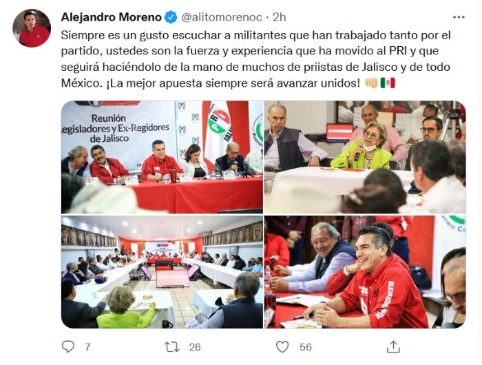 Para elegir al próximo o próxima dirigente del PRI en Jalisco, se privilegiará que si bien el perfil tenga experiencia, también se buscará que sea joven para que le dé al partido un toque más fresco.Aunque no dio fecha para las elecciones de la persona que dirigirá el PRI una vez que Ramiro Hernández, aseguró que será este mismo año, de cara a los procesos electorales del 2024, dijo Alejandro Moreno, presidente del Comité Ejecutivo Nacional (CEN) del PRI, también conocido como “Alito”.“El PRI tiene sus mecanismos internos, sus procedimientos para elegir a nuestras dirigencias, pero vamos a poner por delante siempre ese diálogo, ese consenso, y el comité nacional será respetuoso de la decisión y del medio que habrá de tomar como decisión el Consejo Político Estatal. Aquí se habrá de decidir el método y nosotros lo vamos a apoyar”, explicó respecto del proceso que podría seguirse para la elección.Dentro del partido, añadió, hay mujeres y hombres valiosos por igual, por lo cual no se establecerá alguna convocatoria exclusiva.“Hay muchas mujeres que participan en el proceso que tendrán su tiempo, su momento debido. Habrá una convocatoria para la renovación del comité estatal En mujeres y hombres con experiencia Icon juventud que pueden encabezar la dirigencia del partido lo que puedo asegurar es que no hay dados cargados para nadie que nosotros le habremos de construir el consenso en el acuerdo político como es el pri sumando a todas las expresiones a las y los compañeros del partido porque el partido los necesitamos a todos”, expresó.Por otra parte, dijo, no dejan de lado la opción de concretar coaliciones rumbo a proceso electoral a fin de sumar fuerzas en contra de Morena. Incluso, si Movimiento Ciudadano quisiera sumarse, podrían llegar a negociarlo.JM
