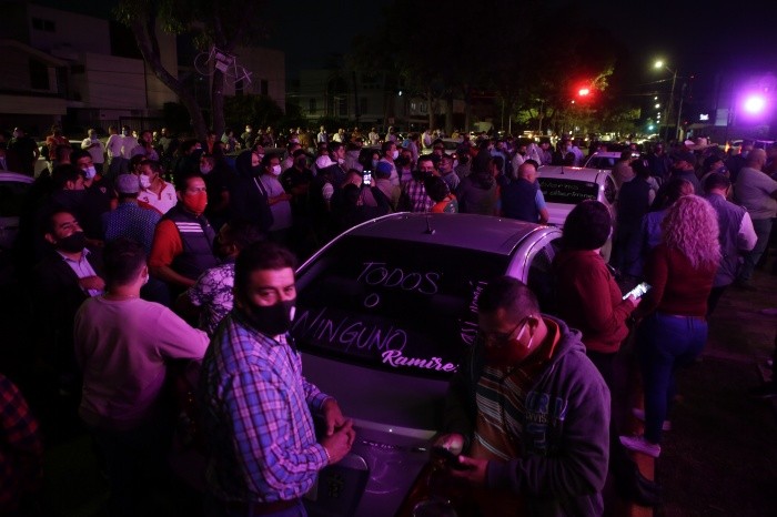 Choferes de la Unión de Conductores de Jalisco realizaron una manifestación la noche de este lunes para reiterar su inconformidad con la aplicación del botón de emergencia, que les prohíbe dar servicio de lunes a viernes a partir de las 21 horas y durante el fin de semana.Los inconformes se dijeron discriminados. Se reportó que los manifestantes tuvieron una confrontación con elementos de la Policía Vial quienes a la altura de la Glorieta de la Minerva intentaron impedir que llegaran a la residencia del Ejecutivo estatal.Los vehículos avanzaron con circulación lenta y tardaron más de una hora en llegar a Casa Jalisco.En el punto ocuparon los carriles en ambos sentidos de avenida Manuel Acuña. Los conductores inconformes buscan entregar un pliego petitorio para reiterar su molestia con las restricciones a su servicio y pedir que se les permita laborar igual que a los taxis.Organizadores afirmaron que en la manifestación participaron entre 500 y mil choferes, el reporte oficial refirió alrededor de 400 vehículos.LS