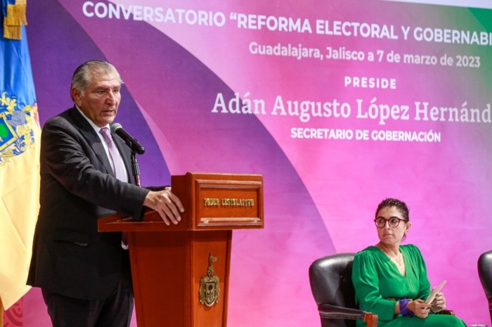 El Plan B de la reforma electoral no desmantela al sistema electoral ni implica el despido masivo de personal, sostuvo el secretario de gobernación Adán Augusto López Hernández, que visitó el Congreso de Jalisco para encabezar un conversatorio sobre el tema.El titular de la Secretaría de Gobernación argumentó que con las modificaciones suprimen mil 264 plazas en el Instituto Nacional Electoral (INE), que dijo tiene 17 mil 500 empleados con una burocracia dorada.El funcionario federal recomendó tomar un curso de matemáticas al presidente del INE, Lorenzo Córdova y al consejero Ciro Murayama que habían denunciado más de ocho mil despidos. Insistió en que la reforma está bien diseñada para que los mexicanos gasten menos en los procesos electorales.“Efectivamente hay algunos trabajadores que van a quedarse sin empleo, son 32 juntas locales y de cada una de ellas se va a despedir o reubicar a dos vocales, que era gente que no tenía mayor ocupación; son 64. De las juntas auxiliares son 300 por cuatro, son mil 200. Ahora que ya no van a tener que hacer, el señor Córdova y el señor Murayama, a la mejor les conviene tomar un curso de matemáticas para que se entretengan. El resto del personal que labora en el Instituto Nacional Electoral es intocable”, dijo.Al arribo al Congreso estatal, Adán Augusto López negó que odie al INE y reiteró que no habrá tantos despidos como denunciaron los opositores.En otros temas, el secretario evadió hablar del caso de los ciudadanos estadounidenses secuestrados en Tamaulipas, dijo que la Secretaría de Seguridad y Protección Ciudadana dará los detalles sobre el asunto. Negó que el hecho afecte las relaciones de México y Estados Unidos. “Desde luego que no (fractura la relación) es un hecho lamentable pero no tiene porqué fracturar la relación de amistad, comerciales, económica; con los Estados unidos”, dijo.Antes de su visita al Congreso estatal, el secretario de gobernación se reunió con el gobernador de Jalisco, dijo que abordaron temas como la seguridad. Evadió hablar del tema electoral, de las bardas de apoyo a sus aspiraciones o de los aspirantes morenistas a la gubernatura.En el conversatorio sobre la Reforma Electoral, el Coordinador del grupo parlamentario de Morena, José María “Chema” Martínez resaltó que la reforma electoral cala a quienes han tenido sueldos gordos en el INE, pues se terminará con un monopolio y el privilegio que han imperado en el órgano electoral.“Cala hondo, sobre todo a quienes se hacen llamar falsamente demócratas con una ética y una moral muy delgada, pero con salarios y sueldos muy gordos. También cala por supuesto a quienes tenían antes de la reforma el monopolio y el privilegio, y va a calar más cuando (se) ponga en relieve lo verdaderamente importante, ʻmás pueblo, menos burocraciaʼ”, señaló.“Creo que tenemos un falso debate, que se amplifica cuando existen unos cuantos que prefieren provocar miedo que sentarse a discutir y contrastar ideas”, puntualizó.José María Martínez mencionó que se está frente a una nueva etapa de la vida pública, donde la honestidad y la eficiencia deben ser el centro de todas las consideraciones. MF