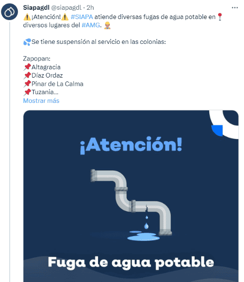 El Sistema Intermunicipal de los Servicios Agua Potable y Alcantarillado (Siapa) reportó la tarde de este domingo que habrá algunos cortes de agua en diferentes colonias de los municipios de Zapopan y Guadalajara.A través de sus redes sociales, Siapa informó que se encuentran atendiendo algunas fugas de agua en diferentes puntos de la Zona Metropolitano de Guadalajara, por tal motivo se suspenderá el servicio en las siguientes colonias: Se espera que el servicio de agua potable se restablezca durante la tarde del lunes 15 de enero. Ante cualquier duda o aclaración, el Siapa pone a disposición los siguientes medios para que resuelvas tus preguntas.MF