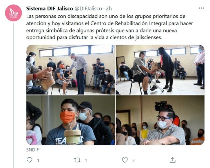 La Secretaría del Sistema de Asistencia Social (SSAS) por medio del DIF Jalisco, en coordinación con el DIF nacional, otorgó en el Centro de Rehabilitación Integral (CRI) prótesis que apoyarán a personas con amputación de extremidades inferiores.El principal objetivo de este apoyo es promover la inclusión social y laboral de las personas con discapacidad para mejorar su calidad de vida, facilitando su movilidad y funcionalidad.Los beneficiados fueron 100 personas con discapacidad motora secundaria por amputación, de los cuales los rangos de edad son de 18 a 75 años, siendo el 91% hombres.“Es un programa innovador que se está haciendo aquí en el Centro de Rehabilitación Integral de Jalisco, aquí están los talleres me gustaría (observen la elaboración prótesis) es un trabajo totalmente artesanal desde la medida, poderles ayudar a continuar su vida con una prótesis. Hoy de manera simbólica entregamos a tres pacientes principalmente para que salgan adelante a pesar de la adversidad y que sigan con sus actividades cotidianas”, comentó Alberto Esquer Gutiérrez, Secretario de la Secretaría del Sistema de Asistencia Social (SSAS).Además, Esquer señaló que este apoyo en el CRI no tenga un límite presupuestal para realizar las prótesis que sean necesarias.También se entregó un millón 179 mil 626 pesos (recurso estatal) para el re-equipamiento de la Unidad Regional de Rehabilitación del Municipio de Zapotlán El Grande, tratando de reforzar su operación ya que actualmente tiene una capacidad instalada para otorgar 3000 servicios de forma anual, con el objetivo de aumentar y garantizar la atención oportuna y adecuada en las terapias físicas de las personas con discapacidad o riesgo de adquirirla.JM