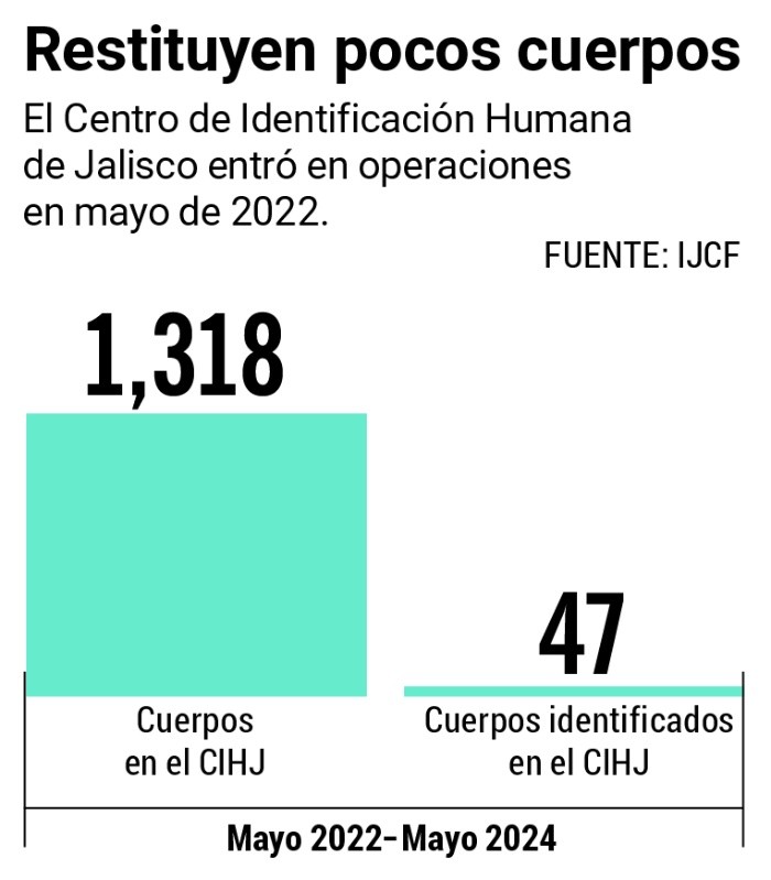 Luego de ocho años de búsqueda, María del Rosario Macías localizó a su hija. Apenas le confirmaron que el cadáver de María Guadalupe Alcalá Macías estuvo durante todo ese mismo tiempo en las instalaciones del Servicio Médico Forense.Su hija desapareció en marzo de 2016 y el cuerpo fue encontrado seis meses después en Tlajomulco de Zúñiga. Desde entonces la buscó y esta semana recibió la noticia de que estaba en las instalaciones de la morgue. Lamenta que no le tomaron muestras de ADN “porque yo no era compatible con ella…”, pero era la única disponible porque sus demás hijos “eran menores de edad” y fueron rechazados.María del Rosario acudió ayer a la Comisión Ejecutiva de Atención a Víctimas para solicitar apoyo económico, ya que el cadáver no puede ser cremado, solamente enterrado por protocolo, y no puede enfrentar los gastos.Además de pedir a las autoridades que agilicen la identificación de los cuerpos, también exige a la Fiscalía de Jalisco que encuentre a quien le quitó la vida, con la intención de que sea castigado y no se repitan estas historias. “Las mamás sufrimos mucho a raíz de que desaparece un hijo… se nos va la vida. Tenemos que salir día con día a buscarlos. Y salimos con miedo”.Expertas en temas de ciencias forenses y desapariciones señalan que la falta de identificación de cuerpos en el Instituto Jalisciense de Ciencias Forenses se debe, por una parte, a la alta criminalidad que se vive en el Estado, a pesar de la creación del Centro de Identificación Humana de Jalisco. Denisse Ayala, académica de la Universidad de Guadalajara e integrante del Comité de Análisis en Materia de Desapariciones, explicó que la violencia que se vive en el Estado es un elemento que “es un foco rojo” y es una de las razones de que Jalisco sea primer lugar en personas desaparecidas (más de 15 mil), además de estar entre los estados con mayor número de asesinatos y fosas clandestinas.Acentuó que las formas de cometer los crímenes dificultan más la identificación: “Las formas homicidas también complican la identificación humana: no es lo mismo identificar un cuerpo completo que un cuerpo seccionado. La forma en que también se cometen los homicidios y las ejecuciones en el estado han transitado por múltiples formas que tienen que ver con un ejercicio de querer exterminar a uno”.Anna Chimiak, especialista del Centro de Justicia para la Paz y el Desarrollo, recordó que, si bien el proceso de capacitación del personal del Centro de Identificación Humana de Jalisco arrancó desde hace varios años, se enfocan en la identificación de larga data; es decir, en los cuerpos resguardados con más antigüedad. “Frente a los hallazgos de fosas, cotidianamente no lleva a cabo las acciones de procesamiento de estos cuerpos y los procesos de identificación. (El Centro) ha sido creado con el enfoque basado en los cuerpos de larga data, que son los cuerpos esqueletizados para poder (identificar) desde otras técnicas”.La falta de personal también es otra crítica de especialistas, ya que falta más equipo para acelerar las investigaciones y las identificaciones de los cuerpos.Tan solo en el Centro de Identificación Humana hay mil 318 cuerpos en el Área de Resguardo Temporal, según respondió el organismo a través de Transparencia.Además, el Instituto Jalisciense de Ciencias Forenses (IJCF) informó que solo ha logrado la restitución de 47 cuerpos en poco más de dos años de operaciones del nuevo inmueble, representando apenas el 3% de los cadáveres almacenados. Asimismo, colectivos como Familias Unidas por Nuestros Desaparecidos Jalisco (Fundej) afirman que falta personal y equipamiento para que el Centro de Identificación Humana opere mejor.Expertos en materia de seguridad afirman que la crisis forense que vive el estado tiene relación con el incremento de los homicidios, algo que ha contribuido a que Jalisco sea el primer lugar con más desapariciones del país.La coordinadora de Identificación Humana del Instituto Jalisciense de Ciencias Forenses (IJCF) informó, vía Transparencia, que el Centro de Identificación Humana de Jalisco (CIHJ), sólo ha logrado la restitución de 47 cuerpos, esto a dos años del inicio de operaciones del centro.El inmueble, que concluyó sus obras el pasado mes de febrero, cuenta con un Área de Resguardo Temporal en la que se conservan hasta mil 318 cadáveres, “dato estadístico independientemente del estado que guardan las personas fallecidas”, según se indicó en la respuesta brindada a este medio.Es decir, sólo se ha restituido 3% de los cuerpos del total almacenado. Esto impacta en la posibilidad de que los cuerpos de personas fallecidas sin identificar que llegan al CIHJ sean restituidos a sus familiares. Un ejemplo es Verónica Gómez Armas, quien desde el 9 de junio de 2022 acude cada 22 días a las instalaciones del Servicio Médico Forense para saber si entre los cadáveres almacenados en el sitio está el de su hijo, Mario Rafael Gómez, a quien apodaban “El Chamuco”.“Aquí llego, me toman mi credencial, me paso (a las instalaciones) y allá ya buscan el nombre de mi hijo y el mío y ya me pasan a ver en la pantalla los cuerpos. El análisis de ADN me lo tomaron desde que empecé a venir. No he visto muchos avances”, reconoció la madre buscadora tras arribar a la sede del Semefo metropolitano.Denisse Ayala, académica de la Universidad de Guadalajara e integrante del Comité de Análisis en Materia de Desapariciones de la casa de estudios, señaló que la violencia en el estado es un elemento que ha propiciado la crisis forense, principalmente por la alta cantidad de homicidios que registra la entidad, siendo uno de los primeros lugares a nivel nacional, así como Jalisco con más desapariciones en todo el país.“El tema de la identificación humana tiene un antecedente que es la crisis forense, y se deriva de que Jalisco tiene una grave crisis de segurid