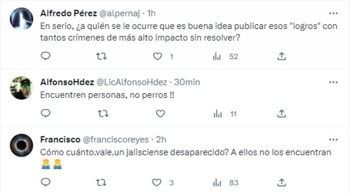 Este jueves 20 de abril, la Fiscalía de Jalisco compartió en redes sociales una polémica publicación en la que se informa que fue localizado un perro valuado en 18 mil pesos, el cual había sido robado de su domicilio desde el pasado mayo. "Como resultado de los actos de investigación de la Fiscalía del Estado se logró recuperar un perro de la raza Pomerania con un valor de 18 mil pesos, el cual tenía denuncia por robo", informó la dependencia estatal en su comunicado.El perrito en cuestión tenía una denuncia de robo desde el 28 de mayo del presente año, y fue recuperado a partir de una orden de cateo en la colonia San Martín de Las Flores de Abajo. "Al existir datos de prueba, esta representación social solicitó una orden de cateo a un Juez, quien obsequió el mandato judicial, logrando su aseguramiento en buen estado de salud", finalizó la Fiscalía.La publicación fue acompañada de numerosas críticas, con usuarios señalando que cómo es que la Fiscalía puede considerar el rescate de un perro "un logro", considerando la situación actual de inseguridad y violencia que se vive en nuestro estado, y la crisis de más de 15 mil desaparecidos que azota la entidad."En serio, ¿a quién se le ocurre que es buena idea publicar esos "logros" con tantos crímenes de más alto impacto sin resolver?", fue el comentario de uno de los usuarios. "¡Encuentren personas, no perros!" "¿Cómo cuánto vale un jalisciense desaparecido? A ellos no los encuentran", fueron algunas de las quejas presentes en la publicación. En el comunicado oficial, la Fiscalía "exhorta a la ciudadanía a prevenir el robo de sus mascotas". Según el Registro Nacional de Personas Desaparecidas y No Localizadas (RNPDNO), en su corte del 6 de mayo del 2023, actualmente hay en Jalisco 15 mil 012 personas que no han regresado a casa.FS