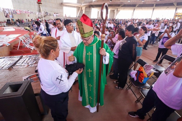 Carlos, Perla, Daniel, Lucero, Pablo, Brenda, Alfredo, Alma, Jesús, Wendy, y una lista innumerable más de nombres plasmados en decenas de fichas de búsqueda, que una a una eran colocadas sobre el presbiterio del Santuario de los Mártires de Cristo Rey, a los pies del altar donde este domingo se desarrolló la misa anual por las y los desaparecidos de Jalisco.Todos los barandales dentro del Santuario también estuvieron enmarcados por los rostros de decenas de hombres y mujeres quienes son buscados incansablemente por sus familias.Durante el sermón el cardenal Francisco Robles Ortega, quien ofreció esta misa, instó a las familias a no perder la fe en Dios y en que sus seres queridos habrán de ser encontrados, y les pidió que sigan unidas en su lucha.“Hay circunstancias en la vida que son tan trágicas, tan dolorosas, que pueden llevarnos a decir, ¿Y dónde estás tú, Jesús? ¿Por qué no respondes? ¿Por qué no bajas la cara ante esta persona que te está pidiendo? Y es posible que nos sintamos pendados de ya no creer, de ya no vivir. Sepamos que aunque fallen, todas las circunstancias, todos los recursos y todas las personas que tienen que ver en la solución de nuestros problemas, debemos nosotros de saber que Jesús no nos falla, que Él está, que Él comparte, que Él sabe del dolor injustamente llevado”, manifestó Robles Ortega.“Lo peor que nos puede pasar, que después de la pena, después de esta tragedia, es que nos veamos como enfrentados, como divididos, como cada día buscando otros intereses, que no sean los de la auténtica justicia y la verdad. Esta circunstancia nos debería unir más, como hermanos, como familia”, añadió.Robles Ortega señaló que la fortaleza de la unión es lo único que podrá contra las adversidades “de los intereses de unos pocos”, que prevalecen pese a las dolencias del pueblo, como lo son las desapariciones de personas y los desaparecidos.“Pongamos en manos de nuestros hermanos mártires esta terrible realidad por la que pasan tantos muertos, tantos hermanos y hermanas, por los que han perdido un ser querido, sea un papá, sea tío, sea hermana, sea hermano, sea mujer, por los que han perdido un ser querido sin saber la causa y sin saber el nombre, donde están. Pongamos en manos de nuestros hermanos mártires esta intención para que intercedan y pongamos luz, solución, pero en la justicia, en la verdad, en la totalidad, no en el egoísmo ni en los intereses, que sólo terminan favoreciendo a unos, pocos”, manifestó.Tras el sermón ofrecido por el Cardenal y antes del ofrecimiento de la hostia, algunas familias dejaron flores blancas sobre las fichas de búsqueda colocadas al pie del altar.Para despedir la misa, las familias pidieron también por las autoridades, para que el gobernador, los alcaldes, ministerios públicos y quienes tienen a cargo el deber de las búsquedas, sean sensibles al dolor y puedan desempeñar sus labores para encontrar a las más de 15 mil personas desaparecidas al día de hoy en Jalisco.Entre las familias asistentes a esta musa se encontró la de Perla Esmeralda Gutiérrez Esquivel, vista por última vez cuando fue sustraída del departamento donde vivía con su pequeño niño, quien hoy tiene seis años de edad, en el Fraccionamiento Villas, de Tlajomulco de Zúñiga.Nataly, su hermana, recordó que ese 27 de junio de 2023, se encontraba acompañada del pequeño, cuando llegaron varios hombres armados y se la llevaron, enfrente del niño, quien no deja de preguntar día a día cuándo regresará su mamá.Dijo, Perla Esmeralda, de 22 años, es soltera y no tenía novio, y en el tiempo de su desaparición trabajaba en una imprenta.“No entendemos el porqué. Nada más queremos que aparezca, saber que mi hermana esté bien. Queremos que mi hermana esté bien. Ella va a volver, porque nosotros no vamos a descansar hasta encontrar a mi hermana. Vamos a buscar por donde sea y hasta saber el porqué. Quienes se la llevaron saben ante mano que mi hermana no hacía nada, queremos que regrese, que vuelva. Porque mi hermana no debía nada. No tenía ninguna amistad mala”, dijo Nataly.También estuvo presente la familia de Pablo Andrés García García, quien tenía al momento de su desaparición 29 años, y quien el próximo 11 de octubre cumplirá dos años de haber desaparecido.Mireya, su mamá, recordó que el día en que se lo llevaron se encontraba durmiendo con su familia dentro de su domicilio, ubicado en la colonia Moderna de Guadalajara, y hasta ahí arribó un grupo de unas 15 personas armadas y lo sacó de su domicilio para llevárselo en uno de los autos que vendía, ya que se dedicada a la compra-venta de vehículos.“Es lo más duro que puede haber, desde ese día no sabemos absolutamente nada de él. Parece que se lo tragó la tierra, hoy no sabemos nada de él. La Fiscalía en lugar de buscar solo nos preguntan que qué información les tenemos nosotros. Es muy triste porque tiene tres niños, y están chiquitos. Él no fuma, ni toma, es muy hogareño, y no sabemos por qué se lo llevaron”, lamentó la mujer.Hoy, dijo, esta misa les da un poco de paz y esperanza, y de fé en que tarde o temprano van a encontrar a Pablo Andrés. “No importa el tiempo que sea, vamos a esperarlo y a buscarlo, porque tenemos la fe de que él va a regresar”, finalizó Mireya.MF