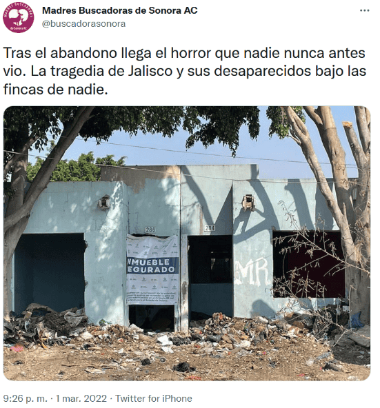 Tras poco más de una semana de labores en el Estado, las madres buscadoras de Sonora, Querétaro, Puebla y Jalisco entre otros han encontrado 68 bolsas con restos humanos durante sus búsquedas en distintos puntos de la Entidad.Tan solo este martes, las buscadoras reportaron la localización de seis bolsas negras que se hallaban bajo una finca de Tlajomulco de Zúñiga, municipio donde se han encontrado la mayoría de los positivos obtenidos por las madres buscadoras.Hasta la noche de ayer, a las buscadoras les faltaban todavía cuatro fincas, donde suponen hay más indicios por procesar.“Tras el abandono llega el horror que nadie nunca antes vio. La tragedia de Jalisco y sus desaparecidos bajo las fincas de nadie”, señalaron las Madres Buscadoras de Sonora en su cuenta de Twitter tras el noveno día de trabajos en nuestro Estado.Hasta el momento la Fiscalía de Jalisco no ha informado sobre el total de víctimas a las cuales podrían corresponder dichos indicios. El último corte dado a conocer se informó el pasado 25 de febrero, cuando el Fiscal del Estado, Luis Joaquín Méndez, confirmó que las osamentas extraídas de una finca del fraccionamiento Cielito Lindo, también en Tlajomulco, correspondían a dos víctimas.Las madres buscadoras llegaron a Jalisco el lunes pasado con la finalidad de realizar búsquedas en campo en su lucha por encontrar a sus seres queridos, pues saben que podrían ser hallados en entidades aledañas al lugar donde desaparecieron, además de ayudar también a las madres y otros colectivos de Jalisco.GC