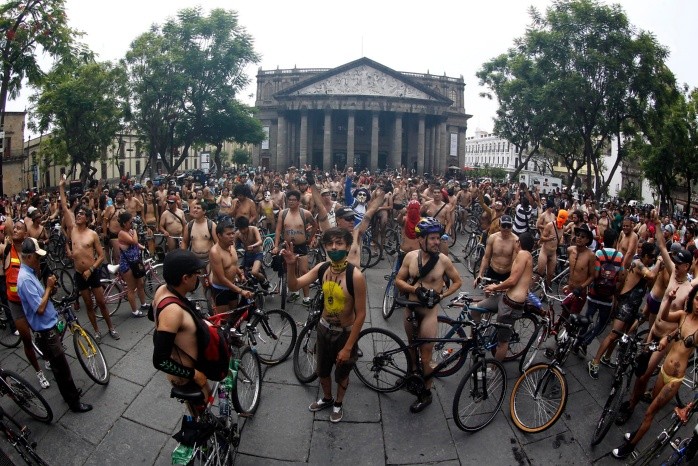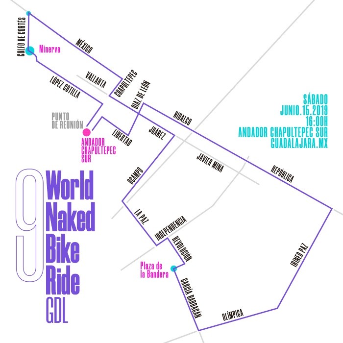 Por novena ocasión, más de un millar de ciclistas saldrán a las calles este 15 de junio para cuestionar la dependencia del combustible fósil, exigir el respeto a los ciclistas y peatones, promover el uso de transportes no motorizados así como la integridad humana y social, en el World Naked Bike Ride (WNBR).Desnudos y en bicicleta o en transportes no motorizados, personas de la Ciudad de México, Morelia, Puebla, Colima, Guadalajara y Vancouver, buscan crear conciencia del uso de la bicicleta como un transporte sustentado en la energía y locomoción humana que representa un beneficio para la salud pública y para el medio ambiente.A las 16:00 horas en el andador Chapultepec Sur, se darán los preparativos para las personas que quieran ser maquillados y manifestarse con arte en sus cuerpos. En punto de las 18:00 horas, iniciará el recorrido por el andador hasta la calle Libertad hasta Enrique Díaz de León para tomar Hidalgo y República hasta la calle Irineo Paz, Olímpica, Marcelino García Barragán, Constancia, Revolución, Independencia, La Paz, Ocampo, Juárez, Chapultepec, Av. México, Golfo de Cortés, López Cotilla hasta llegar al punto de salida.También se hará un llamado a la ciudadanía por el número de ciclistas muertos dentro de la mancha urbana que en 2019, han aumentado.Al concluir el evento, se entregará a los asistentes una postal conmemorativa y se premiarán a los tres mejores bodypaints.La asistencia es libre y se busca que las personas que desfilen acudan desnudos, sin embargo, quienes busquen hacerlo con ropa o ropa interior, pueden hacerlo.NM