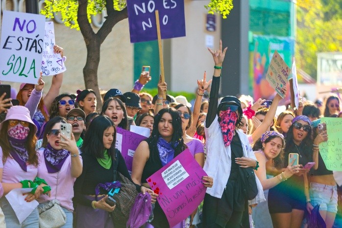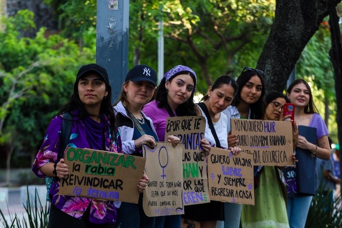 Este viernes ocho de marzo se conmemora el Día Internacional de la Mujer, una fecha para recordar los avances logrados por las mujeres y el movimiento feminista, pero también para reflexionar sobre los desafíos pendientes que aún enfrentan ellas, para garantizar sus derechos y la igualdad de género. Debido a lo anterior, miles de mujeres de todas las edades se reunieron en el Centro Histórico de Guadalajara, tanto en la Plaza Imelda Virgen como en la Rotonda de los Jaliscienses Ilustres, con destino a la Glorieta de las y los Desaparecidos, para manifestarse contra la violencia machista.Durante la protesta, niñas, jóvenes y mujeres adultas se manifestaron con consignas como ““¡señor, señora, no sea indiferente, se mata a las mujeres delante de la gente!”, “¡No más violencia contra las mujeres!, entre otras. Además, al paso de la manifestación, las mujeres protestaron a las afueras de la Rectoría de la Universidad de Guadalajara (UdeG), para reclamar justicia por la violencia de género ejercida por la institución. También, al llegar a avenida Enrique Díaz de León y Juárez, en donde están las instalaciones de la Universidad Tecnológica de Guadalajara (UTEG), las mujeres realizaron pintas y rompieron vidrios para manifestar su enojo por el doble feminicidio ocurrido el pasado siete de marzo en dicha universidad pero en el campus Olímpica. Posteriormente, el contingente llegó a la Glorieta de las y los Desaparecidos, tras casi dos horas de marcha. Mientras que en la Glorieta de los Niños Héroes se reunieron las integrantes de la protesta abolicionismo y separatista, vestidas de negro y con los rostros cubiertos, caminaron por la avenida Mariano Otero hasta llegar al Puente Matute Remus. Antes de salir, las mujeres realizaron una acción de recolección de formas contra la violencia vicaria, además de un posicionamiento por las mujeres asesinadas en Palestina, tras la guerra en Gaza. NA