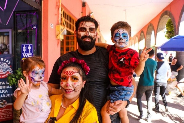 No sólo quienes residen en nuestro Estado han disfrutado de las actividades que se desarrollan dentro del Festival de Muertos de Tlaquepaque, también personas extranjeras se han dado cita para celebrar estas tradicionales festividades.Andrea Saldaña acudió este día a pasear con su familia al Centro de Tlaquepaque. Juntos con su esposo y sus dos pequeños hijos maquillaron sus rostros haciendo alusión a las tradicionales catrinas, mientras caminaron por los andadores y los alrededores del Parián.Para Andrea el poder hacer partícipe a su familia de estas actividades representa el poder continuar con las tradiciones mexicanas.“Nos encanta Tlaquepaque y estas celebraciones, siempre que podemos venimos, me encanta que haya tanta artesanía y más en esta primera vez que venimos al festival. Ya nos tomamos fotos en los altares, con las catrinas, y ahorita vamos a seguir ya el recorrido. Lo recomendamos completamente”, expresó la mujer.Kenny Sum es un joven que viajó desde Hong Kong a Tlaquepaque sólo para disfrutar de este día. Contó que fue a través de Internet que tras una búsqueda encontró que en este Pueblo Mágico las celebraciones en torno al Día de Muertos se viven en un ambiente de fiesta, y por ello arribó a nuestra ciudad desde el pasado sábado.“Leí sobre este lugar y decidí venir a disfrutar aquí este día. Todo lo que he visto ha sido muy hermoso, hay muchas cosas que ver, la gente luce feliz y ha sido muy amable durante mi estancia. Me ha gustado mucho”, comentó Kenny.También asistieron los esposos Alicia y Juan, quienes dijeron han acudido a estas festividades desde hace aproximadamente una década, y quienes dijeron haberse sentido felices de haber regresado tras el aislamiento por el COVID-19.“Lo que más me gusta es ver la ambientación y ver el ánimo y la alegría de la gente que viene a disfrutar de los altares de muertos, de las catrinas y los catrines, de la comida”, dijo Juan.“A mi me gusta ver que la tradición todavía se guarda con los altares , y sobre todo venir y poderme arreglar, maquillarme como una catrina. Ahora regresamos y para mi es de lo mejor que puede haber”, dijo por su parte Alicia.Por último, pero no menos importante, se encontró Jhon, quien acudió junto con su esposo desde San Diego, California, sólo para poder disfrutar de estas celebraciones, luego de haber encontrado información en Internet y redes sociales, además de haber escuchado muy buenas recomendaciones del Pueblo Mágico, de su hospitalidad y de la gran variedad de comida y bebidas.“Todo está fantástico, todos deberían venir. Es una gran manera de venir a festejar este día, de celebrar a quienes murieron para mantenerlos con nosotros. El festival también es una oportunidad para maquillarse y recordar a nuestros antepasados, toda mi vida había querido hacerlo”, dijo Jhon.Hasta el próximo 2 de noviembre, las personas podrán disfrutar de manera gratuita más de 120 actividades en el marco del Festival de Muertos de Tlaquepaque, no sólo en la zona Centro, sino también en otras sedes como el Centro Cultural El Refugio, el Jardín Hidalgo, la Pila Seca, la Casa de la Artesanía y el Museo Pantaleón Panduro, entre otros.JM
