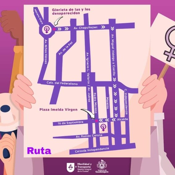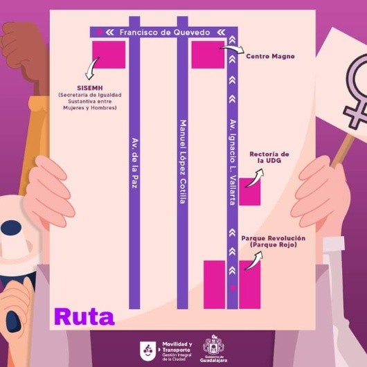 Debido a las marchas que se llevarán a cabo para conmemorar el Día Internacional de la Mujer en el centro de Guadalajara este martes 8 de marzo, se anunciaron cierres viales en algunas calles del Centro tapatío.La primera manifestación arrancará a las 14:00 horas desde el Parque de la Revolución o Parque Rojo, quienes tomarán avenida Vallarta hasta Francisco de Quevedo por Centro Magno, para llegar a la Secretaría de Igualdad Sustantiva entre Mujeres y Hombres (SISEMH).Por la tarde a las 17:00 horas comienza otra movilización en la Glorieta de Los Desaparecidos y caminarán hacia la Antimonumenta en la Plaza Imelda Virgen. Este contingente se moverá por avenida Chapultepec, luego Hidalgo hasta Alcalde y llegan a la Plaza Imelda Virgen. Por lo anterior, habrá cierres en esas avenidas.Por estas marchas conmemorativas del Día de la Mujer #8M te recomendamos tomar las siguientes rutas alternas, puedes tomar las siguientes calles y avenidas:GC