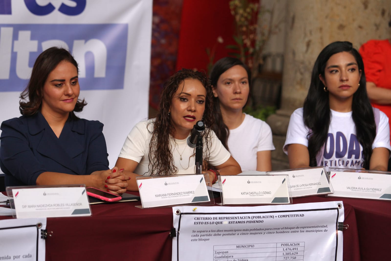 Este lunes diputadas, regidoras, presidentas de partidos políticos, funcionarias de Morena, Hagamos, Futuro, Partido Verde, y del PRD, así como mujeres activistas, presentaron su posicionamiento en contra de la reforma en materia de paridad que Movimiento Ciudadano y PAN quieren llevar a cabo.Durante el evento, la regidora de Morena, Mariana Fernández, señaló que la reforma en la cual pretenden modificar la paridad en bloques de población por “bloques de competividad”, ocasionaría que las candidaturas de las mujeres lleguen a municipios “grandes” sin que estos representen la gobernabilidad de poblaciones por arriba de los 50 mil habitantes.Recordó, actualmente se obliga a mantener una paridad (50/50) en bloques poblacionales, en los que se encuentra la Zona Metropolitana de Guadalajara, y lo cual da posibilidad a que las mujeres puedan obtener mayores responsabilidades y visibilidad en municipios de alta relevancia según datos establecidos de población. Sin embargo, dijo la reforma a la sentencia lograda en 2021, además de ser “un atraso a los avances en materia de paridad” puede convertirse en una trampa pues “la competitividad” se vuelve relativa a los intereses de cada partido.“Para qué hablamos de paridad en las gubernaturas si las mujeres no tendrán la experiencia de haber pasado por las alcaldías más grandes, en manejar presupuestos por arriba de los 10 mil millones, de tener exposición mediántica, de saber de áreas de seguridad. Queremos que hayan las mismas oportunidades para las mujeres que hubieron en el 2021. No queremos permitir que a las mujeres nos traten como estorbo. Y Hay que decirlo, esta iniciativa es de Movimiento Ciudadano y sus 16 votos los aprovecharán para sacar esta reforma”, expresó Mariana Fernández.Añadió, espera que la banacada de mujeres, que constituye la mitad de las diputaciones en el congreso estatal, reflexionen sobre lo que el partido pretende hacer. La diputada por Hagamos, Mara Robles, señaló que lo anterior ocurre porque los partidos desean quedarse a como de lugar con “las joyas de la corona”, siendo estas los 10 municipios del AMG y municipios como Lagos de Moreno, impidiendo que lleguen a ellos las mujeres.Por su parte, Katia Castillo, presidenta de Morena en Jalisco, recordó que la Paridad es un principio de los derechos humanos, así como el garatizar el pleno elercicio de las mujeres, lo cual, considera, si se ejecuta en el artículo 24 BIS del Codigo Electoral Estatal. El establecimiento de bloques de competitividad, señaló, solo traería un impacto negativo en la Paridad de género, pues si bien la reforma “supone garantizar que sean postulados en altamente competitivos”, la redacción del artículo, las lagunas y la ambigüedades del mismo “solo dejan incertidumbre.“Además, se permite a los partidos políticos distribuir libremente las candidaturas en materia de paridad del bloque de porcentaje de votación medio, lo que implica que no hay garantía explícita de paridad en este bloque. Esto puede conducir a una falta de equidad de género en la distribución de las postulaciones”, lamentó, y ante lo cual pidió reglas y leyes claras para garantizar clara y precisamente la paridad en el ámbito electoral.La diputada por Morena, María Padilla Romo, dijo que si bien respeta al Observatorio de Participación Política de las Mujeres, la sesión de puntos constitucionales que llevaron a cabo el 19 de junio ocurrieron anomalías en cuanto a los acuerdos respecto de la consulta solicitada para conocer la opinión de personas expertas en la materia para llevar a cabo la reforma.Por ejemplo, dijo, la consulta contiene preguntas tendenciosas, como ¿si funcionó la paridad en 2021?, cuando, el que existan mujeres regidoras en las alcaldías de la metrópoli es precisamente muestra de ello. “Si no hubiera existido paridad en las candidaturas, muy probablemente ni ellas hubieran llegado a estos puestos y todo seguiría regido por hombres”. Valeria Ávila, vicepresidenta del partido Hagamos, adelantó que, de aprobarse la reforma, las integrantes de este bloque de mujeres la judicializará ante los tribunales electorales, tal como lo hicieron en 2021, cuando se impugnaron tres veces los lineamientos.Dijo, no se trata de retroceder, sino que, por el contrario, debería sumarse un bloque cruzado, considerando los criterios de población y de competitividad. “Esto para que, como el antecedente lo dice, tengamos una gobernadora en el Estado, porque todos los que han sido gobernadores, han sido presidentes municipales de Guadalajara”, añadió.Por su parte la doctora Susana Muñiz Moreno, integrante del Observatorio de Participación Política de las Mujeres, señaló que asistió a esta ponencia del bloque de mujeres porque, aseguró, a las y los miembros del mismo no se les consultó nada, sin embargo, detalló, mantener los bloques poblacionales es indispensable para lograr la paridad, por lo cual estos deben permanecer en la ley.“Lo que recibimos fue un correo electrónico donde nos invitaban a preguntarles cosas a quién sabe quién, y a ver un video, pero no hubo nunca donde pudiéramos tener abierto un micrófono para poder expresar nuestra opinión, ni mucho menos para votar en conjunto en el sentido de los participantes. Por eso estoy aquí, para demandar que existan los criterios de paridad con el criterio poblacional”, expresó.Al bloque también acudieron figuras como la presidenta de Futuro, Susana de la Rosa; la coordinadora del Partido Verde en Zapopan, Cleopatra Sandoval; la regidora por Morena, Candelaria Ochoa, y la activista y promotora de la donación de órganos, Mily Naveja, entre otras.FS