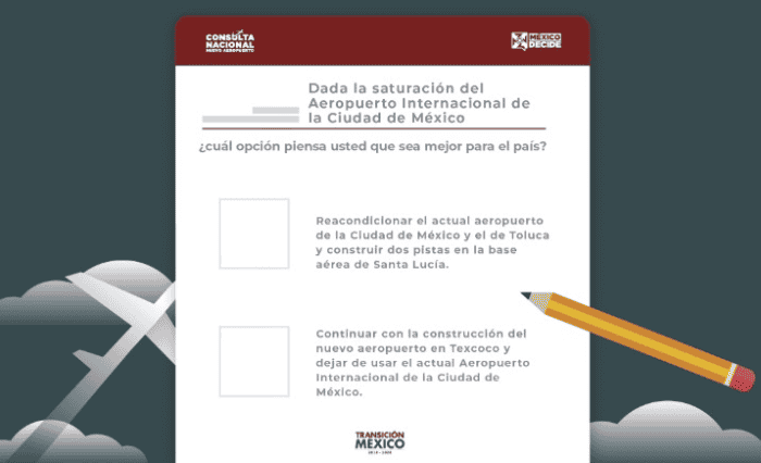 A través del sitio mexicodecide.com.mx se puede conocer toda la información al respecto de la jornada de cuatro días que comienza el jueves 25 de octubre donde se pretende recabar la opinión de la población al respecto de la construcción del Nuevo Aeropuerto de la Ciudad de México.En Jalisco se instalarán 44 mesas de votación, principalmente en plazas públicas de los municipios y sitios de tránsito de personas como mercados y paradas de transporte; curiosamente en el Aeropuerto de Guadalajara no habrá urnas. Al final de este artículo consulta algunos puntos donde los tapatíos podrán plasmar su opinión al respecto.En todo el país habrá mil 73 mesas de votación en 538 municipios en las 32 entidades de la República Mexicana, según el sitio de "México Decide", en estas áreas habita el 82% de la ciudadanía. En el portal, también se pueden consultar análisis de pros y contras tanto de continuar con la construcción del aeropuerto en Texcoco, como de la alternativa de ampliar el aeropuerto de Santa Lucía.Para participar en la consulta nacional del Nuevo Aeropuerto, solamente es necesario presentar la credencial de elector vigente (IFE o INE) y acudir a una de las mesas que estarán abiertas los días 25, 26, 27 y 28 de octubre de 8:00 de la mañana a 6:00 de la tarde.Como se explica en el sitio mexicodecide.com.mx, el 75% de los municipios del país tendrá una mesa de la consulta en la plaza principal de las cabeceras municipales. En el caso de Jalisco estas son las ubicaciones principales:GUADALAJARAZAPOPANTLAQUEPAQUETLAJOMULCOTONALÁEL SALTOPUERTO VALLARTAZAPOTLÁN EL GRANDEPara ver la lista completa de la ubicación de las urnas consulta el sitio mexicodecide.com.mx