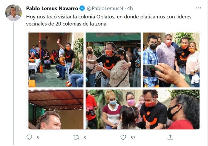 Pablo Lemus, candidato de Movimiento Ciudadano a la presidencia municipal de Guadalajara, se reunió esta mañana con líderes vecinales de la Zona Oblatos, de quienes recabó sus principales inquietudes y presentó sus propuestas para construir un gobierno de puertas abiertas en la capital de Jalisco.Los líderes vecinales exigieron principalmente mejoras en la seguridad, así como rehabilitación de espacios públicos y áreas verdes, además de mejorar los servicios públicos.Entre los líderes estaban representantes de las colonias San José Río Verde, Santa Cecilia, Heliodoro Hernández Loza, San Onofre, Santa Rosa, Balcones de Oblatos y Circunvalación Oblatos.Sobre su demanda de seguridad, Lemus recordó que se fortalecerá la corporación policial y se modificará el modelo de patrullaje, además de desarrollar una política de prevención del delito a través de la educación, la cultura y el deporte.Para ello, construirá dos centros comunitarios Colmena en las colonias Rancho Nuevo y Miravalle, y habilitará el Centro Cultural Santa Cecilia.Las Colmenas, recordó, toman como modelo los Parques Bibliotecas de Medellín, Colombia.“Son espacios de recuperación del tejido social donde se brindan talleres contra adicciones, violencia intrafamiliar, violencia contra las mujeres y oficios para la reintegración a la vida productiva de las personas, entre otras actividades”.JM