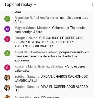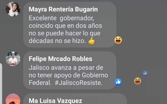 El segundo informe del gobernador fue transmitido en redes sociales (Twitter, Facebook y Youtube) donde los “trolles” festejaron su discurso, aún antes de que tomara la palabra.“Excelente gobernador, coincido que en dos años no se puede hacer lo que en décadas no se hizo”, “#JaliscoResiste”, “¡Cuando los chuchos ladran es que hay alguien que lo incomoda! ¡Muy buen trabajo gobernador! ¡El trabajo se ve! Felicidades”, “Excelente trabajo, gobernador” y “Muy bien, gobernador”, fueron algunos de los mensajes que manifestaron en Facebook.Además de un desplegado titulado “El rescate y saneamiento del Río Santiago son una prioridad para el gobierno de Jalisco” que se repitió en varias ocasiones.Mientras que unos más aprovecharon para atacar al Presidente Andrés Manuel López Obrador y al partido Movimiento de Regeneración Nacional (Morena).“Morena vengan a Jalisco para que conozcan cómo gobernar con resultados para los ciudadanos” y “al cacas que ese si roba ,roba, roba y no dice a dónde se va el dinero y eso sí son millones de pesos”.Sin embargo, hubo otros usuarios que no dejaron de cuestionar al gobernador e incluso reclamar por la inseguridad y los pocos beneficiarios de los programas surgidos por la pandemia.“A mi no me llegó ningún apoyo, es mucho dinero lo que comentan, serán sus amigos los beneficiados”, “jajaja protege a los que le pagan nada más” y “El sol no se tapa con un dedo, gobernador, estamos hartos de tus decisiones equivocadas”.Y también quienes señalaron que estaban borrando los mensajes: “porque borran los mensajes tenemos derecho a la libertad de expresión”.NR