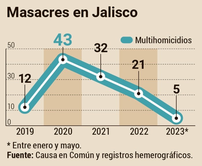 El Instituto Jalisciense de Ciencias Forenses confirmó ayer el asesinato de los ocho jóvenes trabajadores de un call center desaparecidos en mayo. Sus restos están entre los hallados en el fondo de un barranco de la colonia Mirador Escondido, en Zapopan. La confirmación se dio luego de una confronta genética.Ésta no es la única masacre ocurrida durante el Gobierno de Enrique Alfaro. Desde que inició su gestión han sucedido otras 112 entre enero de 2019 y mayo de 2023, según la organización nacional Causa en Común y reportes hemerográficos. Se considera una masacre cuando se confirma el asesinato de tres o más personas en un mismo suceso. El 2020 fue el año que concentró más masacres: 43. Entre los casos más significativos están el asesinato de los tres hermanos González Moreno (Ana Karen, Luis Ángel y José Alberto) en 2021. También el homicidio de 11 personas en la colonia Jauja, Tonalá, en febrero de ese año. Uno más consistió en la ejecución, por parte de un grupo armado, de seis personas en un centro de rehabilitación clandestino en Tlaquepaque, en julio de 2022.Para la codirectora del Centro de Justicia para la Paz y el Desarrollo (CEPAD), Anna Karolina Chimiak, es lamentable que sólo en los casos mediáticos, o cuando hay protestas, la autoridad realice acciones inmediatas. Sin embargo, añadió que es necesario que el caso de los ocho jóvenes no quede ahí: “Deben encontrar a las personas responsables”.Criticó que la impunidad y las fallas en la procuración de justicia son las principales causas por las cuales siguen ocurriendo estas atrocidades en el Estado.Si bien Jalisco es una de las Entidades con más homicidios a nivel nacional, este delito casi no es castigado, pues se documenta 99.7% de impunidad en este ilícito con relación a las sentencias emitidas por el Poder Judicial, de acuerdo con el último estudio “Seguimiento y evaluación del sistema de justicia penal en Jalisco”, elaborado por México Evalúa.Los familiares de los trabajadores del call center optaron por no hablar.