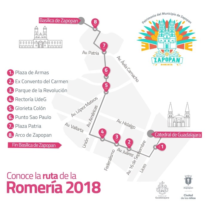 En este año circularán por Av. Hidalgo hasta Liceo, Av. Juárez hasta Av. Américas y de ahí hasta Av. Patria para arribar a la Basílica de Zapopan.