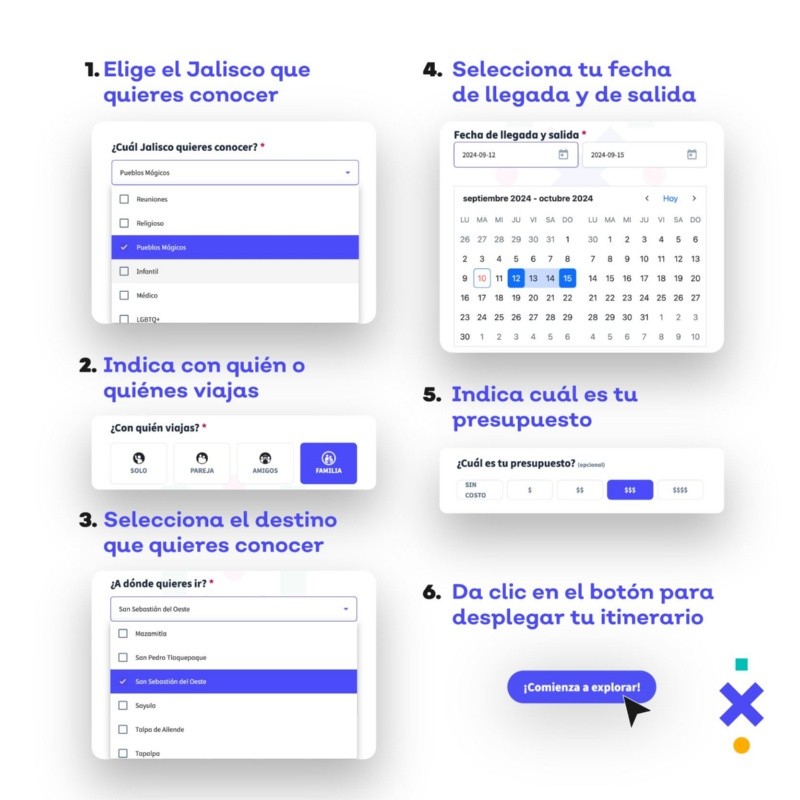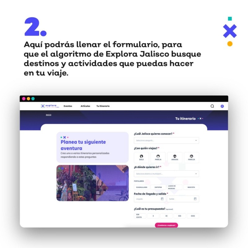 A diferencia de los sitios web convencionales que se enfocan en destinos turísticos, Explora Jalisco permite a los usuarios elaborar itinerarios adaptados a sus necesidades. Esta opción es perfecta tanto para quienes viajan solos, como para parejas que desean una escapada romántica, grupos de amigos o familias con niños.En la presentación oficial de esta plataforma, Vanessa Pérez Lamas, actual responsable de la Secretaría de Turismo Jalisco, enfatizó que este recurso proporciona recomendaciones de viaje excepcionales. Según sus palabras, en Explora Jalisco los viajeros encontrarán “eventos y experiencias; escapadas, temas culturales y deportivos, para poder disfrutar y conocer mejor nuestro estado… Para encontrar esos tips que no encontraríamos en ningún otro lugar”. Además de ofrecer la posibilidad de crear itinerarios, la plataforma presenta reseñas detalladas de los diversos destinos disponibles en nuestro estado a través de sus múltiples regiones. El contenido se renueva de forma continua, lo que garantiza que los visitantes siempre tengan acceso a información fresca y atractiva al explorar el sitio. A través del portal oficial de Explora Jalisco podrás enterarte sobre todos los eventos culturales y recreacionales que se estén organizando al interior del Estado, además de propuestas y sugerencias sobre alojamiento, eventos especiales y servicios que puedas necesitar para vivir la experiencia de visitar Jalisco; aunque no se necesita ser turista para disfrutar de todas las amenidades que Jalisco tiene para dar. En la página oficial de Explora podrás encontrarte con información acerca de los eventos más importantes que se realizan cada año como “Calaverandia”, la FIL, “Navidalia”, “Run, Santa, Run”; pero también puedes consultar exposiciones de arte, obras teatrales, música, eventos de lectura, talleres de todo tipo, tours, y más actividades que te inviten a vivir Jalisco en su máximo esplendor. Podrás estar seguro de que la información proporcionada se encuentra actualizada ya que cada día encontrarás nuevas entradas. Además Explora cuenta con la opción de “Itinerario” donde te ayudan a crear tu calendario de viaje y organizar tu itinerario personal que podrás consultar en tdo momento al crearte una cuenta en el sitio.Para acceder al apartado de “Itinerario”, requieres crearte un perfil en el sitio, con tu usuario la plataforma te ofrecerá una serie de herramientas para facilitarte la organización y planeación de una visita, entre las funciones más destacadas se encuentra la opción de adecuar tus actividades al número de personas que asistirán, tomando en cuenta además los rangos de edad y los intereses particulares además de adaptar tus planes al presupuesto que tengas.Si quieres crearte un perfil en su página web debes dar clic aquí para a continuación dar clic en “iniciar sesión” y seguir los pasos que se te indican, únicamente tendrás que agregar un correo electrónico, crear una contraseña y proporcionar un nombre. Explora cuenta con un apartado de “Destinos”, donde encontrarás fichas técnicas o monografías de los lugares turísticos más visitados en el Estado, como lo son Puerto Vallarta, Tequila, Chapala, Zapopa, Guadalajara, etc.; además de ello la página web te ofrece consejos sobre lo que necesitas empacar para viajar y las mejores fechas para hacerlo. BB